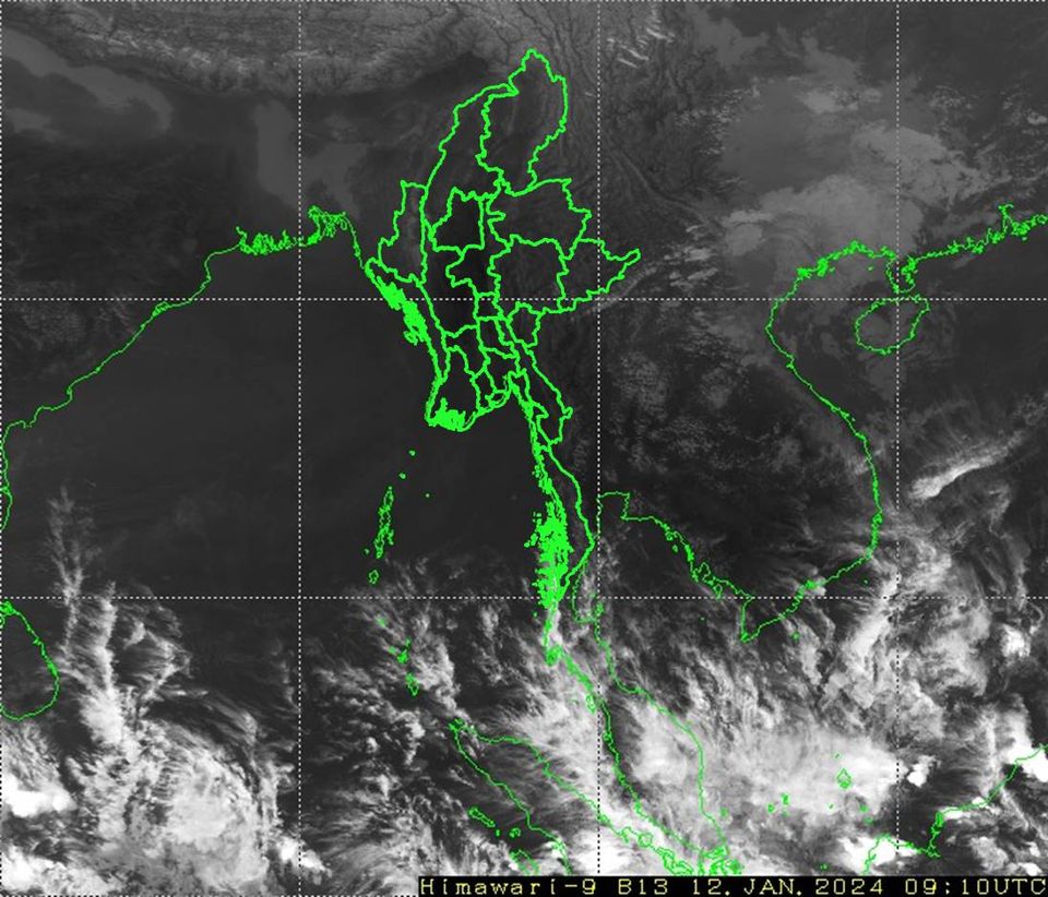 ဘင်္ဂလားပင်လယ်အော်အခြေအနေ။ ကပ္ပလီပင်လယ်ပြင်တောင်ပိုင်းနှင့် ဘင်္ဂလားပင်လယ်အော် တောင်ပိုင်းတို့တွင် တိမ်အသင့်အတင့် ဖြစ်ထွန်းနေပြီး၊ ကပ္ပလီပင်လယ်ပြင်မြောက်ပိုင်းနှင့် ကျန်ဘင်္ဂလားပင်လယ်အော်တို့တွင် တိမ်အနည်းငယ် ဖြစ်ထွန်းနေပါသည်။