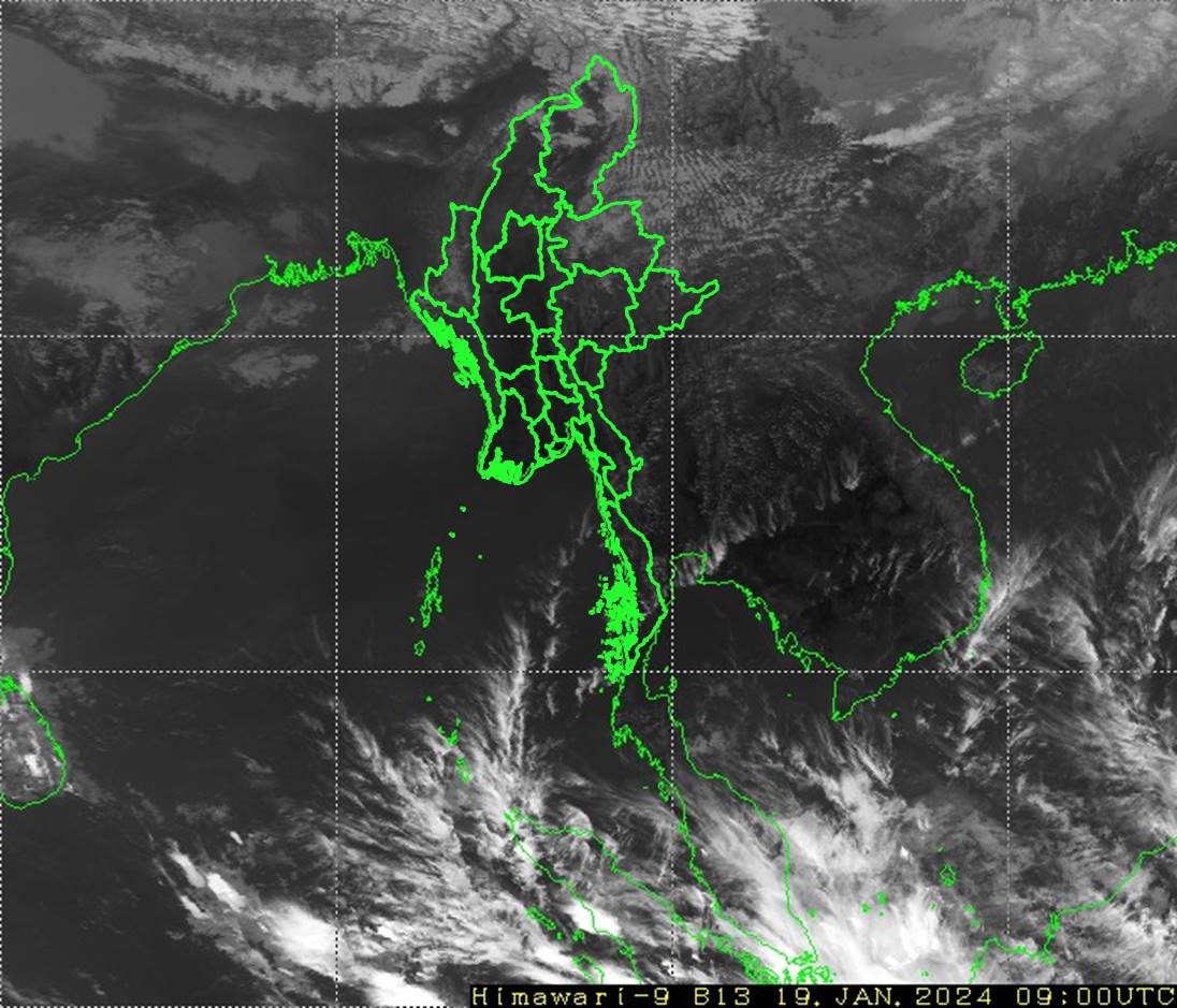 ဘင်္ဂလားပင်လယ်အော်အခြေအနေ။ ကပ္ပလီပင်လယ်ပြင်တောင်ပိုင်းနှင့် ဘင်္ဂလားပင်လယ်အော် အရှေ့တောင်ပိုင်းတို့တွင် တိမ်အသင့်အတင့် ဖြစ်ထွန်းနေပြီး၊ ကပ္ပလီပင်လယ်ပြင်မြောက်ပိုင်းနှင့် ကျန်ဘင်္ဂလားပင်လယ်အော်တို့တွင် တိမ်အနည်းငယ် ဖြစ်ထွန်းနေပါသည်။