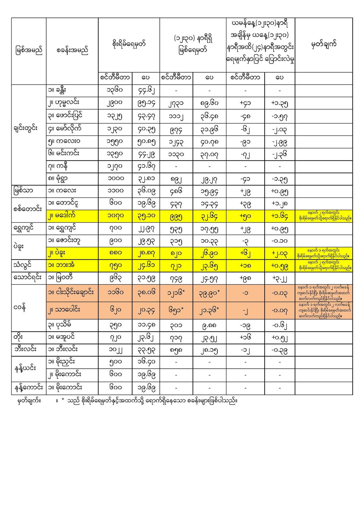 Jul 24,2024 |03:15 | ၂၄-၇-၂၀၂၄ မိုးလေဝသနှင့်ဇလဗေဒညွှန်ကြားမှုဦးစီးဌာနမှ ၂၄-၇-၂၀၂၄ ရက်နေ့ နေ့လယ်(၁၂:၃၀)နာရီအချိန်တွင် တိုင်းတာရရှိသော မြစ်ရေအခြေအနေများကိုသိရှိနိုင်ပါရန် ဖော်ပြလိုက်ပါတယ်……. Crd> မိုး/ဇလ