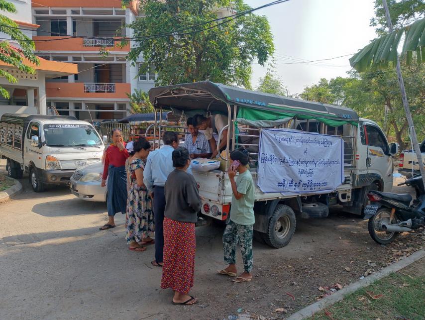 စီးပွားရေးနှင့် ကူးသန်းရောင်းဝယ်ရေးဝန်ကြီးဌာနနှင့် မြန်မာနိုင်ငံကုန်သည် များနှင့် စက်မှုလက်မှု လုပ်ငန်းရှင်များအသင်းချုပ်(UMFCCI)တို့၏ စီစဉ်မှုဖြင့် ဆန်၊ ဆီ၊ ဆား၊ ပဲ၊ ငါးပိနှင့် ကုန်မျိုးစုံဈေးကား များသည် နေပြည်တော်၊ စစ်ကိုင်းနှင့် မန္တလေးမြို့များအတွင်း ငလျင်ဒဏ်သင့် ဝန်ထမ်းအိမ်ရာ များသို့ ၂၀၂၅ ခုနှစ်၊ မတ် ၃၀ ရက်မှစ၍ အိမ်တိုင်ရာရောက် သွားရောက်ကာ သက်သာသောဈေးနှုန်းများဖြင့် ရောင်းချပေး လျက်ရှိပြီး ယနေ့တွင် နှစ်ဆယ့်ခုနှစ်ရက်မြောက်နေ့အဖြစ် ဈေးကား ၇ စီးဖြင့် လှည့်လည်ရောင်းချပေး လျက်ရှိသည်။
