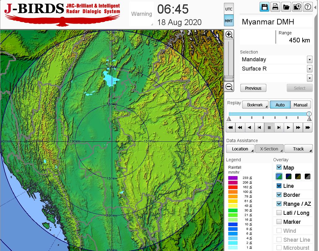 မန္တလေးမြို့နှင့် အနီးတစ်ဝိုက်အတွက် ယနေ့ညနေအထိခန့်မှန်းချက်မှာ နေရာကွက်ကျား မိုးထစ်ချုန်းရွာမည်။ ရွာရန်ရာနှုန်းပြည့် ဖြစ်သည်။