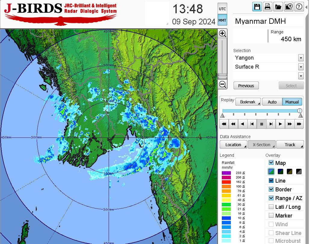 ထူးခြားသည့်အခြေအနေ။ ယနေ့မြန်မာစံတော်ချိန် (၁၂:၃၀)နာရီအချိန် တိုင်းထွာချက်များအရ လာအိုနိုင်ငံမြောက်ပိုင်းတွင် ဖြစ်ပေါ်နေသော လေဖိအားနည်းဆဲလ်သည် အနောက်- အနောက်မြောက်ဘက်သို့ ရွေ့လျားခဲ့ပြီး ဆက်လက်တည်ရှိနေပါသည်။ အဆိုပါ လေဖိအားနည်းဆဲလ်သည် လေပွေလှိုင်းအဖြစ်သို့ တဖြည်းဖြည်းအားလျော့သွားနိုင်ပြီး၊ အနောက်- အနောက်မြောက်ဘက်သို့ ဆက်လက်ရွေ့လျားနိုင်သည်ဟု ခန့်မှန်းရပါသည်။