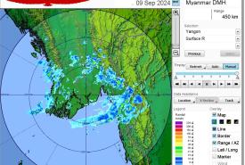 ယမန်နေ့နံနက်(၀၉:၃၀)နာရီအချိန်မှ ယနေ့နံနက်(၀၉:၃၀)နာရီအချိန်အထိ မိုးလေဝသ တိုင်းထွာချက်အကျဉ်းချုပ်။ လွန်ခဲ့သော(၂၄)နာရီအတွင်းက ချင်းပြည်နယ်နှင့် ကယားပြည်နယ်တို့တွင် တိမ်အသင့်အတင့် ဖြစ်ထွန်းခဲ့ပါသည်။ စစ်ကိုင်းတိုင်းဒေသကြီးအထက်ပိုင်းနှင့် မကွေးတိုင်းဒေသကြီးတို့တွင် နေရာကွက်ကျား၊ မန္တလေးတိုင်းဒေသကြီးနှင့် ရှမ်းပြည်နယ် (မြောက်ပိုင်း) တို့တွင် နေရာကျဲကျဲ၊ နေပြည်တော်တွင် နေရာစိပ်စိပ်နှင့် ကျန်တိုင်းဒေသကြီးနှင့် ပြည်နယ်တို့တွင် နေရာအနှံ့အပြား မိုးထစ်ချုန်းရွာခဲ့ပြီး၊ မန္တလေးတိုင်းဒေသကြီး၊ ရှမ်းပြည်နယ် (အရှေ့ပိုင်း)၊ ကရင်ပြည်နယ်နှင့် မွန်ပြည်နယ်တို့တွင် နေရာကွက်၍ မိုးကြီးခဲ့ပါသည်။ မှတ်သားဖွယ်ရာ မိုးရေချိန်များမှာ ရေးမြို့တွင် ၆.၃၈ လက်မ၊ ကော့ကရိတ်မြို့တွင် ၅.၆၇ လက်မ၊ ပြင်ဦးလွင် (ဇီးပင်ကြီး) တွင် ၄.၁၇ လက်မ၊ ပိုင်ကျုံမြို့တွင် ၄.၀၀ လက်မ၊ ပေါင်မြို့တွင် ၃.၉၈ လက်မ၊ ပုသိမ်ကြီးမြို့တွင် ၃.၃၃ လက်မ၊ မိုင်းဆတ်မြို့တွင် ၃.၃၀ လက်မ၊ ဘားအံမြို့တွင် ၃.၁၅ လက်မ၊ မော်လမြိုင်မြို့တွင် ၂.၉၉ လက်မနှင့် ခန္တီးမြို့တွင် ၂.၈၃ လက်မတို့ ဖြစ်ကြပါသည်။