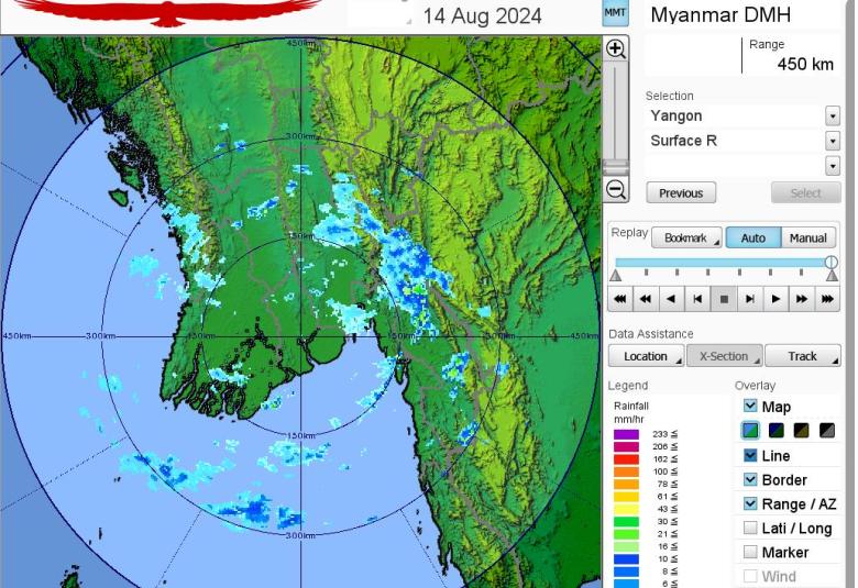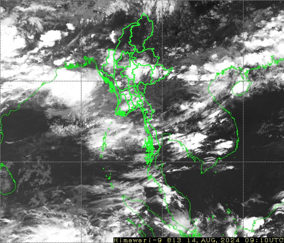 ဘင်္ဂလားပင်လယ်အော်အ‌ခြေအနေ။ ကပ္ပလီပင်လယ်ပြင်နှင့် ဘင်္ဂလားပင်လယ်အော်တို့တွင် မုတ်သုံလေ အားအနည်းငယ်မှ အားအသင့်အတင့် ရှိနေပါသည်။
