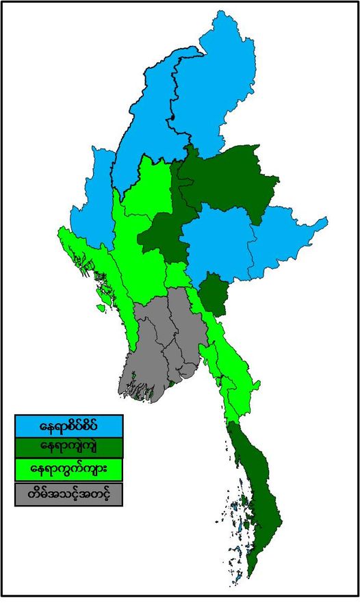 ကရင်ပြည်နယ်နှင့် မွန်ပြည်နယ်တို့တွင် မိုးတိမ်တောင်များ စတင်ဖြစ်ပေါ်လျက်ရှိပြီး အဆိုပါ မိုးတိမ်တောင်များ ရွေ့လျားရာနေရာ တစ်လျှောက်တွင် မိုးရွာသွန်းခြင်းနှင့်အတူ လေပြင်းတိုက်ခတ်ခြင်း၊ မိုးထစ်ချုန်းခြင်း၊ မိုးကြိုးပစ်ခြင်း၊ လျှပ်စီးလက်ခြင်းနှင့် မိုးသီးကြွေခြင်းစသည့် မိုးလေဝသဖြစ်စဉ်များ ဖြစ်ပေါ်နိုင်ပါသဖြင့် ကြိုတင်သတိပြုနိုင်ပါရန် အကြံပြုအပ်ပါသည်။