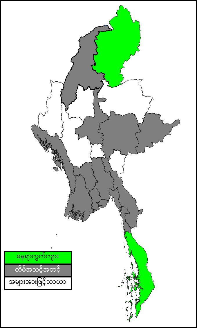 မနက်ဖြန်နံနက်အထိခန့်မှန်းချက်။ တနင်္သာရီတိုင်းဒေသကြီးနှင့် ကချင်ပြည်နယ်တို့တွင် နေရာကွက်ကျား မိုးထစ်ချုန်းရွာမည်။ ရွာရန်ရာနှုန်း ၈၀ ဖြစ်ပါသည်။ နေပြည်တော်၊ စစ်ကိုင်းတိုင်းဒေသကြီးအောက်ပိုင်း၊ ကယားပြည်နယ်၊ ချင်းပြည်နယ်နှင့် ရှမ်းပြည်နယ်(မြောက်ပိုင်း)တို့တွင် အများအားဖြင့် သာယာပြီး ကျန်တိုင်းဒေသကြီးနှင့် ပြည်နယ်တို့တွင် တိမ်အသင့်အတင့် ဖြစ်ထွန်းမည်။