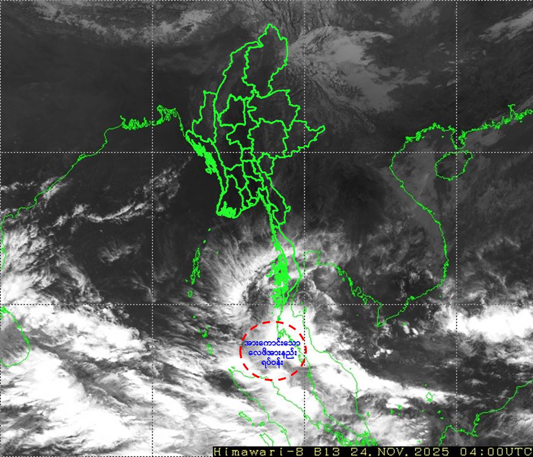 ဘင်္ဂလားပင်လယ်အော်အ‌ခြေအနေ။ ယနေ့မြန်မာစံတော်ချိန် ၁၀:၃၀ နာရီအချိန် တိုင်းထွာချက်များအရ ကပ္ပလီပင်လယ်ပြင်တောင်ပိုင်းနှင့် ယင်းနှင့်ဆက်စပ်လျက်ရှိသော မလက္ကာရေလက်ကြားအနီးတွင် ဖြစ်ပေါ်နေသော အားကောင်းသောလေဖိအားနည်းရပ်ဝန်း (Well Marked Low Pressure Area) သည် ဆက်လက်တည်ရှိ နေပါသည်။ အဆိုပါ အားကောင်းသောလေဖိအားနည်းရပ်ဝန်းသည် အနောက်-အနောက်မြောက်ဘက်သို့ ရွေ့လျားနိုင်ပြီး ပိုမိုအားကောင်းလာကာ ဘင်္ဂလားပင်လယ်အော် အရှေ့တောင်ပိုင်းနှင့် ယင်းနှင့်ဆက်စပ်လျက်ရှိသော ကပ္ပလီပင်လယ်ပြင်တောင်ပိုင်းတို့၌ မုန်တိုင်းငယ် (Depression) အဖြစ်သို့ ရောက်ရှိနိုင်သည်ဟု ခန့်မှန်းရပါသည်။ ဘင်္ဂလားပင်လယ်အော်မြောက်ပိုင်းနှင့် အရှေ့အလယ်ပိုင်းတို့တွင် တိမ်အနည်းငယ် ဖြစ်ထွန်းနေပြီး ကပ္ပလီပင်လယ်ပြင်နှင့် ကျန်ဘင်္ဂလားပင်လယ်အော်တို့တွင် တိမ်အသင့်အတင့်မှ တိမ်ထူထပ်နေပါသည်။