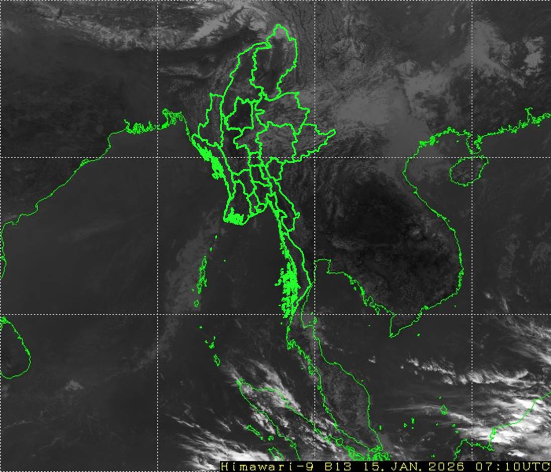 ယမန်နေ့နံနက် ၀၉:၃၀ နာရီအချိန်မှ ယနေ့နံနက် ၀၉:၃၀ နာရီအချိန်အထိ မိုးလေဝသတိုင်းထွာချက် အကျဉ်းချုပ်။ လွန်ခဲ့သော ၂၄ နာရီအတွင်းက မန္တလေးတိုင်းဒေသကြီး၊ ဧရာဝတီတိုင်းဒေသကြီးနှင့် ရှမ်းပြည်နယ်(တောင်ပိုင်း)တို့တွင် နေရာကွက်ကျား မိုးအနည်းငယ်ရွာခဲ့ပြီး ကျန်တိုင်းဒေသကြီးနှင့် ပြည်နယ်တို့တွင် တိမ်အသင့်အတင့် ဖြစ်ထွန်းခဲ့ပါသည်။ ညအပူချိန်များမှာ ရန်ကုန်တိုင်းဒေသကြီးနှင့် ပဲခူးတိုင်းဒေသကြီးတို့တွင် ဇန်နဝါရီလ၏ ပျမ်းမျှအပူချိန်တို့ထက် ၂ ဒီဂရီဆဲလ်စီးယပ်၊ မန္တလေးတိုင်းဒေသကြီး၊ မကွေးတိုင်းဒေသကြီး၊ စစ်ကိုင်းတိုင်းဒေသကြီးအောက်ပိုင်း၊ ဧရာဝတီတိုင်းဒေသကြီး၊ ကယားပြည်နယ်နှင့် ရှမ်းပြည်နယ်(မြောက်ပိုင်းနှင့် အရှေ့ပိုင်း)တို့တွင် ဇန်နဝါရီလ၏ ပျမ်းမျှအပူချိန်တို့ထက် ၃ ဒီဂရီဆဲလ်စီးယပ်မှ ၄ ဒီဂရီဆဲလ်စီးယပ်အထိနှင့် နေပြည်တော်နှင့် ရှမ်းပြည်နယ်(တောင်ပိုင်း)တို့တွင် ဇန်နဝါရီလ၏ ပျမ်းမျှအပူချိန်တို့ထက် ၅ ဒီဂရီဆဲလ်စီးယပ်ပိုခဲ့ပြီး ကျန်တိုင်းဒေသကြီးနှင့် ပြည်နယ်တို့တွင် ဇန်နဝါရီလ၏ ပျမ်းမျှအပူချိန်ခန့်သာ ရှိခဲ့ပါသည်။ ထူးခြားသည့် ညအပူချိန်များမှာ ဟားခါးမြို့တွင် ၄.၀ ဒီဂရီဆဲလ်စီးယပ်၊ တီးတိန်မြို့တွင် ၆.၃ ဒီဂရီဆဲလ်စီးယပ်၊ နမ့်စန်မြို့(ရှမ်းပြည်နယ်တောင်ပိုင်း)တွင် ၆.၅ ဒီဂရီဆဲလ်စီးယပ်၊ ပူတာအိုမြို့တွင် ၇.၃ ဒီဂရီဆဲလ်စီးယပ်၊ မိုးညှင်းမြို့တွင် ၈.၀ ဒီဂရီဆဲလ်စီးယပ်၊ လွိုင်လင်မြို့တွင် ၈.၁ ဒီဂရီဆဲလ်စီးယပ်၊ ခန္တီးမြို့တွင် ၉.၀ ဒီဂရီဆဲလ်စီးယပ်နှင့် မင်းကင်းမြို့၊ မြစ်ကြီးနားမြို့၊ မာန်အောင်မြို့နှင့် သီပေါမြို့တို့တွင် ၁၀.၀ ဒီဂရီဆဲလ်စီးယပ်စီတို့ ဖြစ်ကြပါသည်။ မှတ်သားဖွယ်ရာ မိုးရေချိန်မှာ ရမည်းသင်းမြို့တွင် ၀.၀၄ လက်မ ဖြစ်ပါသည်။