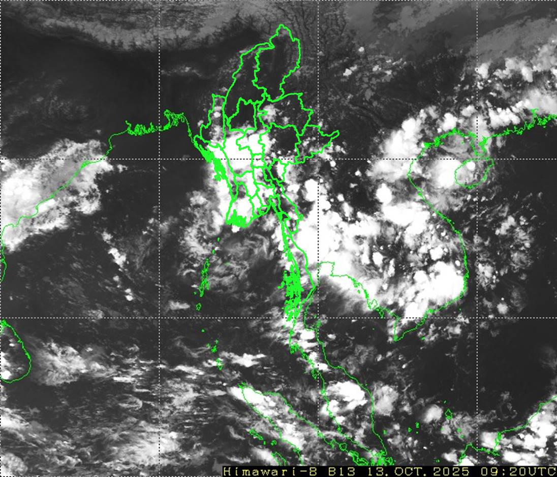 မိုးတိမ်တောင်ဖြစ်ပေါ်မှုအခြေအနေ။ နေပြည်တော်၊ ရန်ကုန်တိုင်းဒေသကြီး၊ မန္တလေးတိုင်းဒေသကြီး၊ ပဲခူးတိုင်းဒေသကြီး၊ မကွေးတိုင်းဒေသကြီး၊ ဧရာဝတီတိုင်းဒေသကြီး၊ တနင်္သာရီတိုင်းဒေသကြီး၊ ကယားပြည်နယ်၊ ကရင်ပြည်နယ်၊ မွန်ပြည်နယ်နှင့် ရခိုင်ပြည်နယ်တို့တွင် မိုးတိမ်တောင်များ ဖြစ်ထွန်းမှုအားကောင်းလျက်ရှိပြီး အဆိုပါ မိုးတိမ်တောင်များ ရွေ့လျားရာနေရာတစ်လျှောက်တွင် မိုးရွာသွန်းခြင်းနှင့်အတူ လေပြင်းတိုက်ခတ်ခြင်း၊ မိုးထစ်ချုန်းခြင်း၊ မိုးကြိုးပစ်ခြင်း၊ လျှပ်စီးလက်ခြင်းနှင့် မိုးသီးကြွေခြင်းစသည့် မိုးလေဝသဖြစ်စဉ်များဖြစ်ပေါ်နိုင်ပါသဖြင့် ကြိုတင်သတိပြုနိုင်ပါရန် အကြံပြုအပ်ပါသည်။