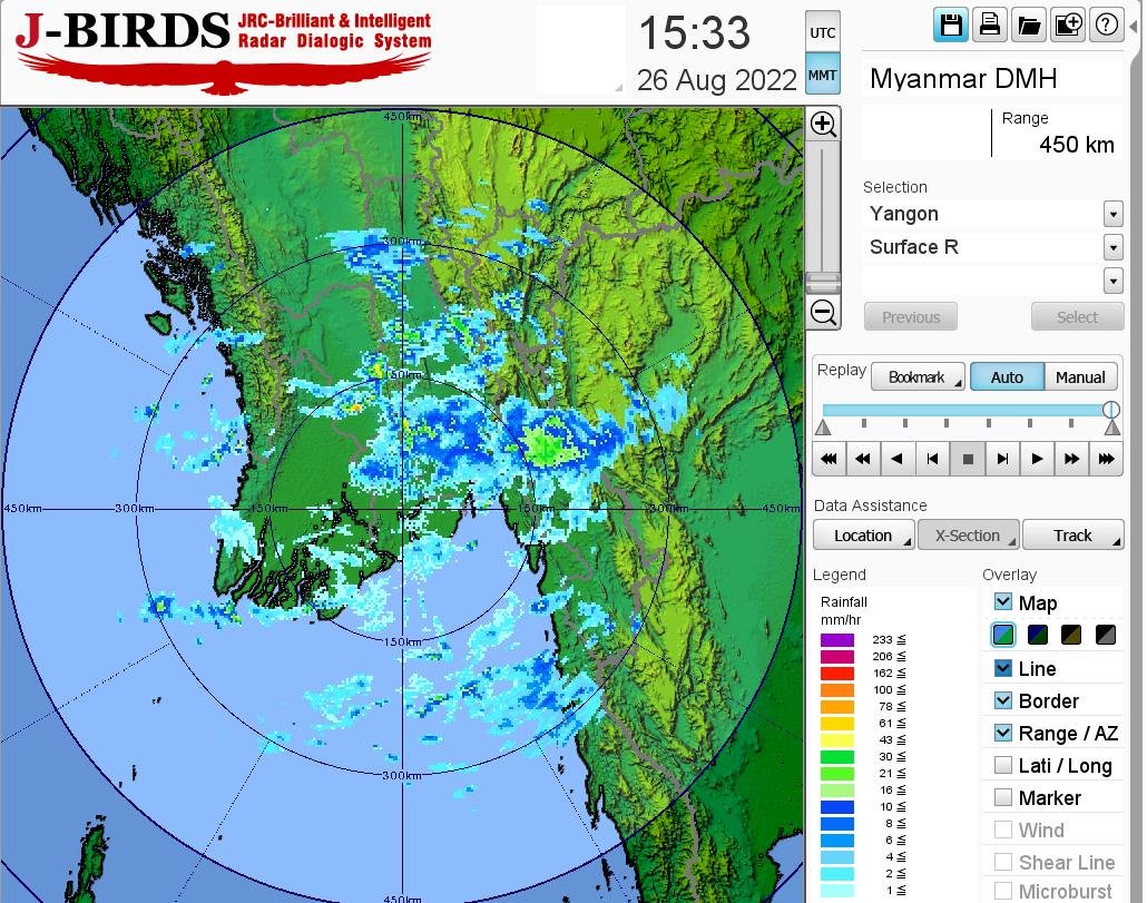 မနက်ဖြန်နံနက်အထိခန့်မှန်းချက်။စစ်ကိုင်းတိုင်းဒေသကြီးအထက်ပိုင်း၊ ကချင်ပြည်နယ်၊ ရှမ်းပြည်နယ်(မြောက်ပိုင်း)နှင့် ကယားပြည်နယ်တို့တွင် နေရာစိပ်စိပ်နှင့် ကျန်တိုင်းဒေသကြီးနှင့် ပြည်နယ်တို့တွင် နေရာအနှံ့အပြားမိုးထစ်ချုန်းရွာပြီး၊ နေပြည်တော်၊ စစ်ကိုင်းတိုင်းဒေသကြီး၊ မန္တလေးတိုင်းဒေသကြီး၊ မကွေးတိုင်းဒေသကြီး၊ ပဲခူးတိုင်းဒေသကြီး၊ ရန်ကုန်တိုင်းဒေသကြီး၊ ဧရာဝတီတိုင်းဒေသကြီး၊ တနင်္သာရီတိုင်းဒေသကြီး၊ ရှမ်းပြည်နယ်၊ ကရင်ပြည်နယ်နှင့် မွန်ပြည်နယ်တို့တွင် နေရာကွက်၍ မိုးကြီးနိုင်ပါသည်။ ရွာရန်ရာနှုန်းပြည့် ဖြစ်ပါသည်။