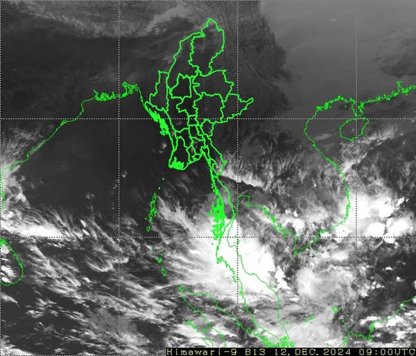 ဘင်္ဂလားပင်လယ်အော်အ‌ခြေအနေ။ ဘင်္ဂလားပင်လယ်အော်မြောက်ပိုင်းနှင့် အရှေ့အလယ်ပိုင်းတို့တွင် တိမ်အနည်းငယ် ဖြစ်ထွန်းနေပြီး၊ ကပ္ပလီပင်လယ်ပြင်နှင့် ကျန်ဘင်္ဂလားပင်လယ်အော်တို့တွင် တိမ်အသင့်အတင့်မှ တိမ်ထူထပ်နေပါသည်။