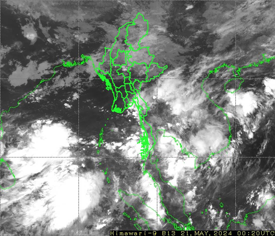 မန္တလေးတိုင်းဒေသကြီး၊ ပဲခူးတိုင်းဒေသကြီး၊ ရန်ကုန်တိုင်းဒေသကြီး၊ တနင်္သာရီတိုင်းဒေသကြီး၊ ကရင်ပြည်နယ်နှင့် မွန်ပြည်နယ်တို့တွင် မိုးတိမ်တောင်များ ဖြစ်ထွန်းလျက်ရှိပြီး အဆိုပါမိုးတိမ်တောင်များ ရွေ့လျားရာ နေရာတစ်လျှောက်တွင် မိုးရွာသွန်းခြင်းနှင့်အတူ လေပြင်းတိုက်ခတ်ခြင်း၊ မိုးထစ်ချုန်းခြင်း၊ မိုးကြိုးပစ်ခြင်း၊ လျှပ်စီးလက်ခြင်းနှင့် မိုးသီးကြွေခြင်းစသည့် မိုးလေဝသဖြစ်စဉ်များ ဖြစ်ပေါ်နိုင်ပါသဖြင့် ကြိုတင်သတိပြုနိုင်ပါရန် အကြံပြုအပ်သည်။