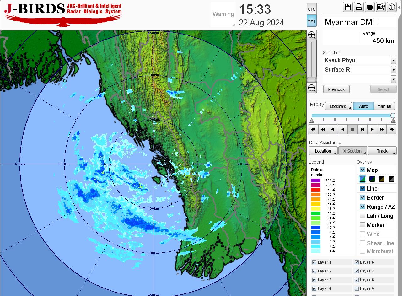 မိုးတိမ်တောင်ဖြစ်ပေါ်မှုအခြေအနေ။ စစ်ကိုင်းတိုင်းဒေသကြီး၊ မန္တလေးတိုင်းဒေသကြီး၊ မကွေးတိုင်းဒေသကြီး၊ တနင်္သာရီတိုင်းဒေသကြီး၊ ကချင်ပြည်နယ်၊ ချင်းပြည်နယ်၊ ရခိုင်ပြည်နယ်၊ ကယားပြည်နယ်၊ ကရင်ပြည်နယ်နှင့် မွန်ပြည်နယ်တို့တွင် မိုးတိမ်တောင်များ ဖြစ်ထွန်းလျက်ရှိပါသည်။