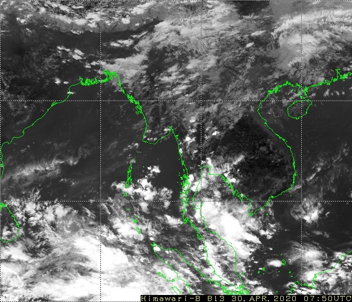 မိုးလေဝသနှင့်ဇလဗေဒညွှန်ကြားမှုဦးစီးဌာနမှ ဧပြီလ ၃၀ ရက်နေ့ မွန်းလွဲ ၂ နာရီအချိန် ထုတ်ပြန်ချက်အရ ဘင်္ဂလားပင်လယ်အော်အ‌ခြေအနေမှာ ကပ္ပလီပင်လယ်ပြင်နှင့် ဘင်္ဂလားပင်လယ်အော် တောင်ပိုင်းတို့တွင် တိမ်အသင့်အတင့်မှ တိမ်ထူထပ်နေပြီး၊ ကျန်ဘင်္ဂလားပင်လယ်အော်တွင် တိမ်အနည်းငယ် ဖြစ်ထွန်းနေပါသည်။