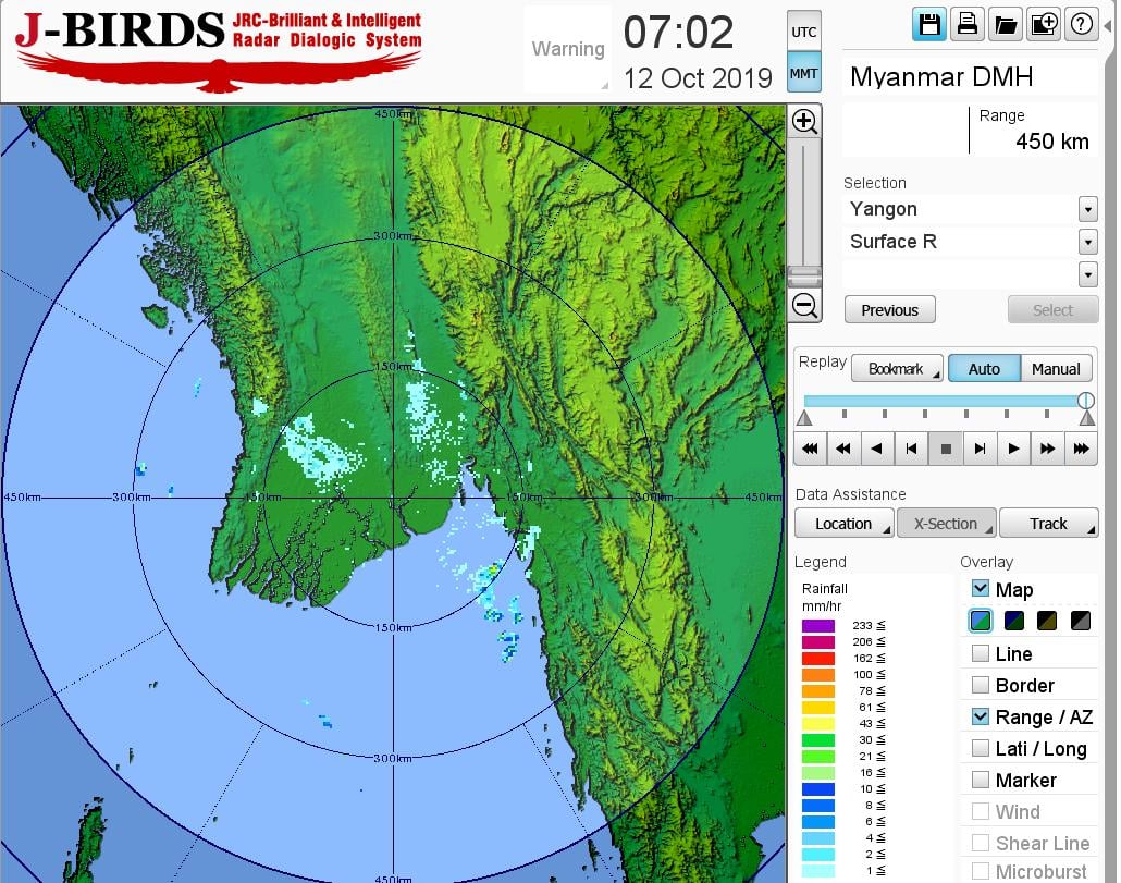 ရန်ကုန်မြို့နှင့် မန္တလေးမြို့တို့ အနီးတစ်ဝိုက်အတွက် ယနေ့ညနေအထိ ခန့်မှန်းချက်မှာ နေရာကွက်ကျား မိုးထစ်ချုန်းရွာမည်။ ရွာရန်ရာနှုန်း(၈၀) ဖြစ်ကြောင်း သိရသည်။