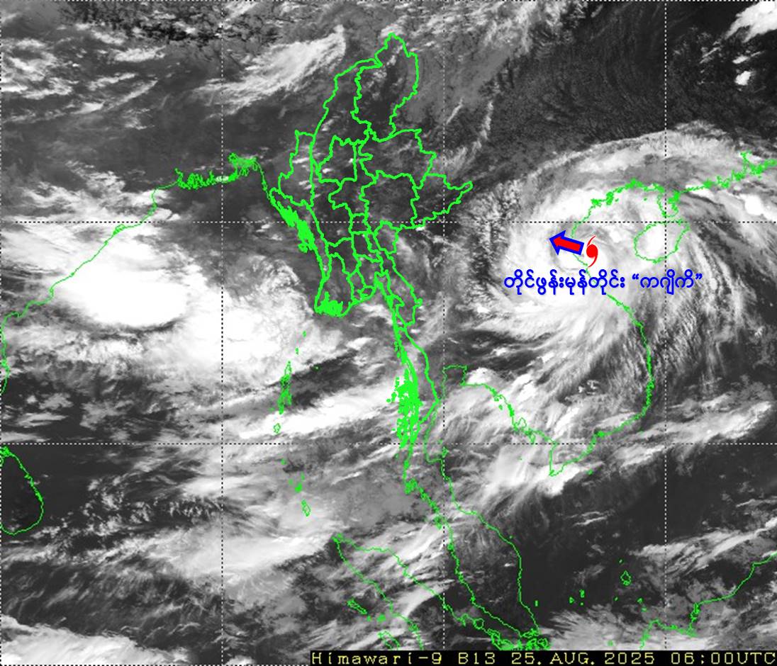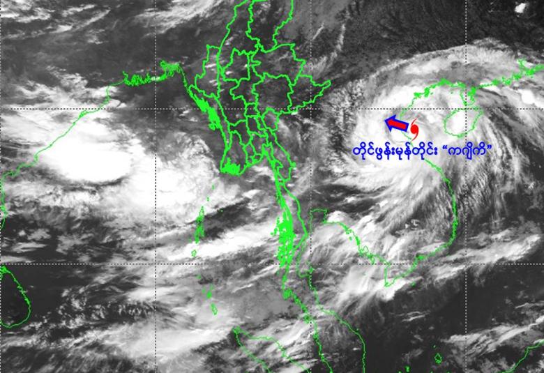 ထူးခြားသည့်အခြေအနေ။ ယနေ့မြန်မာစံတော်ချိန် ၁၂:၃၀ နာရီအချိန် တိုင်းထွာချက်များအရ တောင်တရုတ်ပင်လယ်ပြင်တွင် ဖြစ်ပေါ်နေသော တိုင်ဖွန်းမုန်တိုင်း “ကဂျိကိ” (KAJAKI) သည် အနောက်ဘက်သို့ ရွေ့လျားခဲ့ပြီး၊ တုံကင်ပင်လယ်ပြင်သို့ ရောက်ရှိခဲ့ကာ ဗီယက်နမ်နိုင်ငံ၊ ဗင့်မြို့ (Vinh) ၏ အရှေ့-အရှေ့တောင်ဘက် ရေမိုင် ၃၀ မိုင်ခန့်၊ ဒါနန်းမြို့ (Da Nang) ၏ မြောက်-အနောက်မြောက်ဘက် ရေမိုင် ၁၉၀ မိုင်ခန့်အကွာ ပင်လယ်ပြင်ကို ဗဟိုပြုနေပါသည်။
