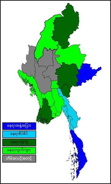 နောက်(၂)ရက်အတွက်ခန့်မှန်းချက်။ နေပြည်တော်၊ ရန်ကုန်တိုင်းဒေသကြီး၊ ပဲခူးတိုင်းဒေသကြီး၊ ဧရာဝတီတိုင်းဒေသကြီး၊ တနင်္သာရီတိုင်းဒေသကြီး၊ ကချင်ပြည်နယ်၊ ကယားပြည်နယ်၊ ကရင်ပြည်နယ်၊ မွန်ပြည်နယ်နှင့် ရှမ်းပြည်နယ်တို့တွင် နေရာကျဲကျဲမှ နေရာစိပ်စိပ် မိုးထစ်ချုန်းရွာနိုင်ပါသည်။