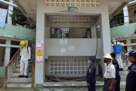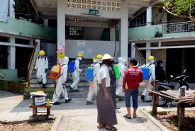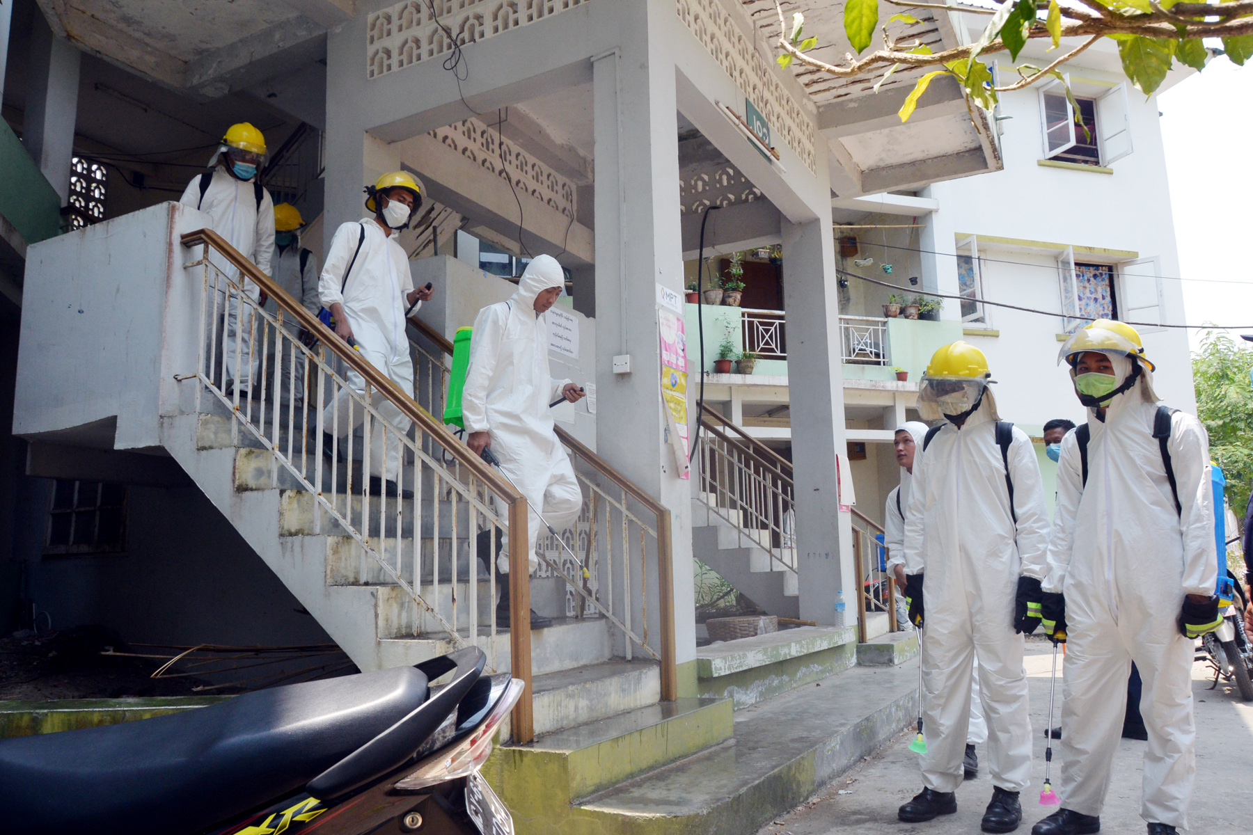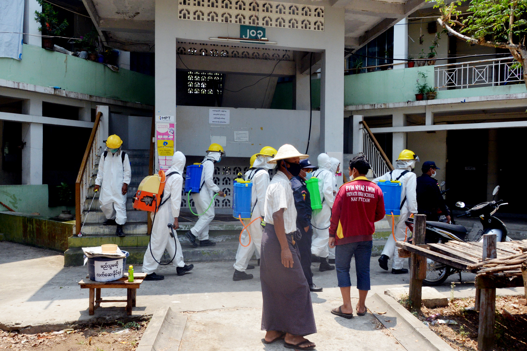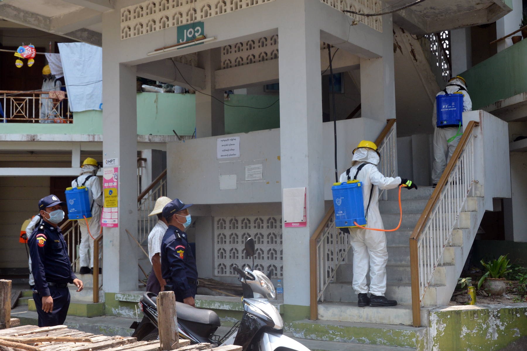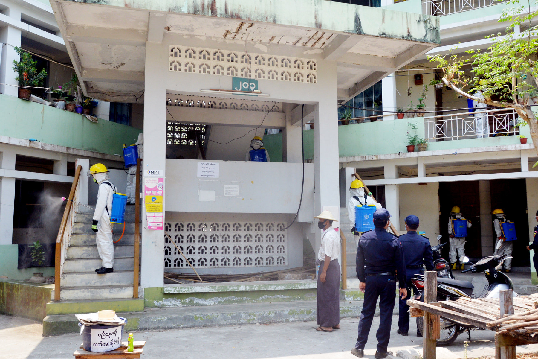 ထိုသို့ ပိုးသတ်ဆေးများပက်ဖျန်းပေးရာတွင် ဥတ္တရခရိုင်မီးသတ်ဦးစီးမှူး ဦးစောလွင်အေး ဦးဆောင်သော မီးသတ်တပ်ဖွဲ့ဝင် ၂၀ ဖြင့် ခရိုင်အဆင့်ဖွဲ့စည်းထားသော ကာကွယ်ဆေးဖျန်းအဖွဲ့ မှ ဝန်ထမ်းအိမ်ရာများ၊ အပျိုဆောင်၊ လူပျိုဆောင်များ၊ အိမ်ရာအတွင်းရှိ စားသောက်ဆိုင်များ၊ ကားဂိုဒေါင်နှင့် မူကြိုကျောင်း များအတွင်း ကိုဗစ် - ၁၉ ရောဂါ ကာကွယ်ရေးအတွက် ဆိုဒီယမ် ဟိုက်ဒရို ကလိုရိုက်ပါဝင်သော ပိုးသတ်ဆေး များကို ပက်ဖျန်းပေးခဲ့ကြသည်။