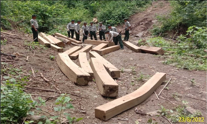 သယံဇာတနှင့် သဘာဝပတ်ဝန်းကျင် ထိန်းသိမ်းရေးဝန်ကြီးဌာန၊ သစ်တောဦးစီးဌာနသည် တရားမဝင်သစ်နှင့် သစ်တောထွက်ပစ္စည်းများ ရှာဖွေဖော်ထုတ်ဖမ်းဆီးရေးကို ပြည်သူပူးပေါင်း ပါဝင်မှုဖြင့် လူထုအခြေပြုစောင့်ကြပ်ကြည့်ရှုသတင်းပို့စနစ် (Community Monitoring and Reporting System-CMRS) အပါအဝင်နည်းလမ်းမျိုးစုံဖြင့် အကောင် အထည်ဖော်ဆောင်ရွက် လျက်ရှိရာ ဩဂုတ် ၂၂ ရက်မှ ၂၈ ရက်အထိ နေပြည်တော်၊ ပြည်နယ်နှင့် တိုင်းဒေသကြီး သစ်တောဦးစီးဌာနများမှ ပေးပို့လာသော စာရင်းများအရ တရားမဝင် ကျွန်း (၄၉ ဒသမ ၉၉၈၈) တန်၊ သစ်မာ (၇ ဒသမ ၇၄၆၆)တန်၊ အခြား (၅၉ ဒသမ ၈၉၈၈)တန်၊ စုစုပေါင်း (၁၁၇ ဒသမ ၆၄၄၂)တန်၊ တရားခံ (၁၇)ဦး၊ ယာဉ်/ယန္တရား (၁၈)စီး ဖမ်းဆီးရမိခဲ့ကြောင်း သစ်တောဦးစီးဌာနမှ သိရသည်။