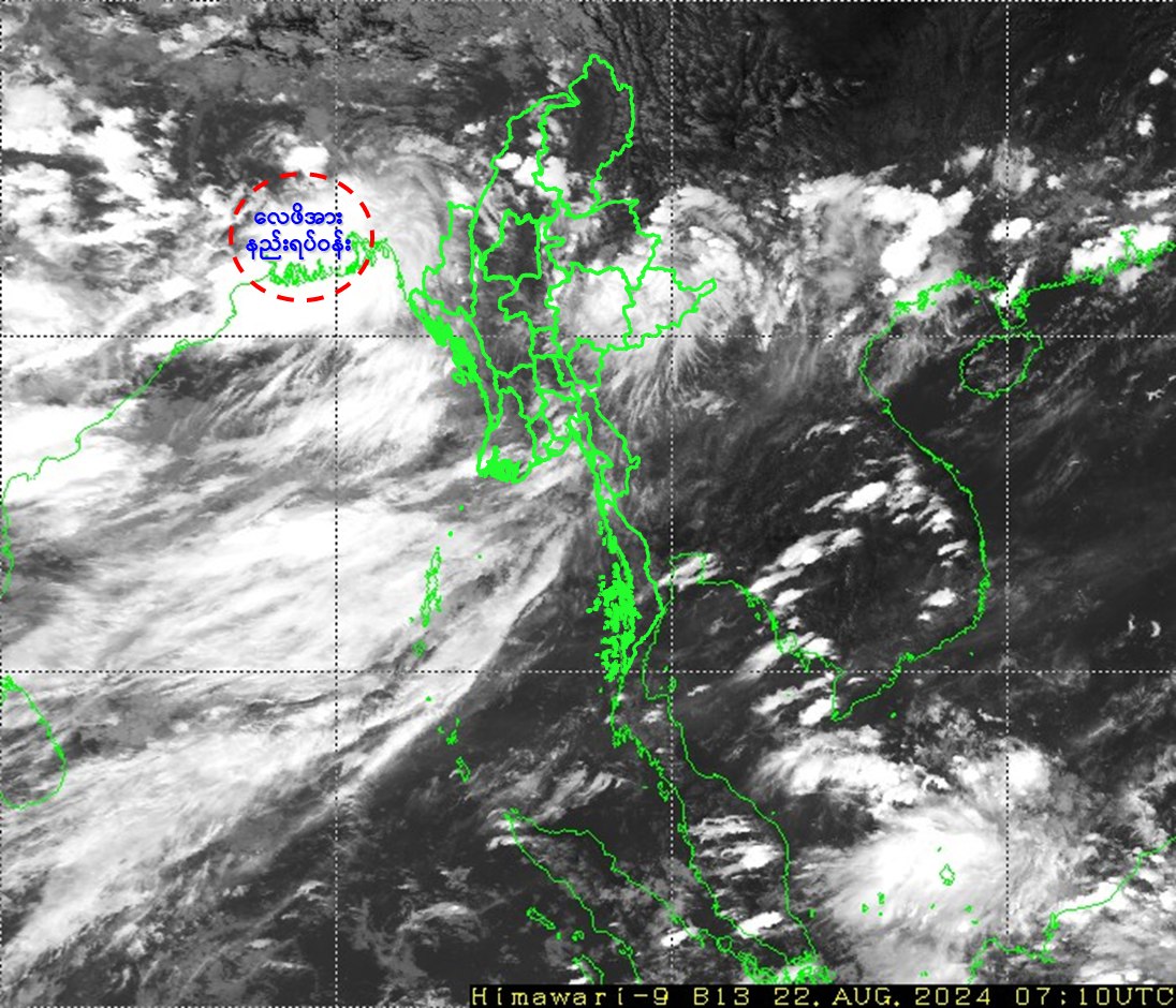 ဘင်္ဂလားပင်လယ်အော်အ‌ခြေအနေ။ ယနေ့မြန်မာစံတော်ချိန် (၁၂:၃၀)နာရီအချိန် တိုင်းထွာချက်များအရ အိန္ဒိယနိုင်ငံ၊ အနောက်ဘင်္ဂလားပြည်နယ်နှင့် ယင်းနှင့်ဆက်စပ်လျက်ရှိသော ဘင်္ဂလားဒေ့ရှ်နိုင်ငံတို့တွင် ဖြစ်ပေါ်နေသော လေဖိအားနည်းရပ်ဝန်း (Low Pressure Area) သည် ဆက်လက်တည်ရှိနေပါသည်။ အဆိုပါ လေဖိအားနည်းရပ်ဝန်းသည် အနောက်ဘက်သို့ ရွေ့လျားနိုင်ပြီး၊ အိန္ဒိယနိုင်ငံ၊ အနောက်ဘင်္ဂလားပြည်နယ်ကို ဖြတ်ကျော်နိုင်သည်ဟု ခန့်မှန်းရပါသည်။ ကပ္ပလီပင်လယ်ပြင်နှင့် ဘင်္ဂလားပင်လယ်အော်တို့တွင် မုတ်သုံလေ အားအသင့်အတင့် ရှိနေပါသည်။