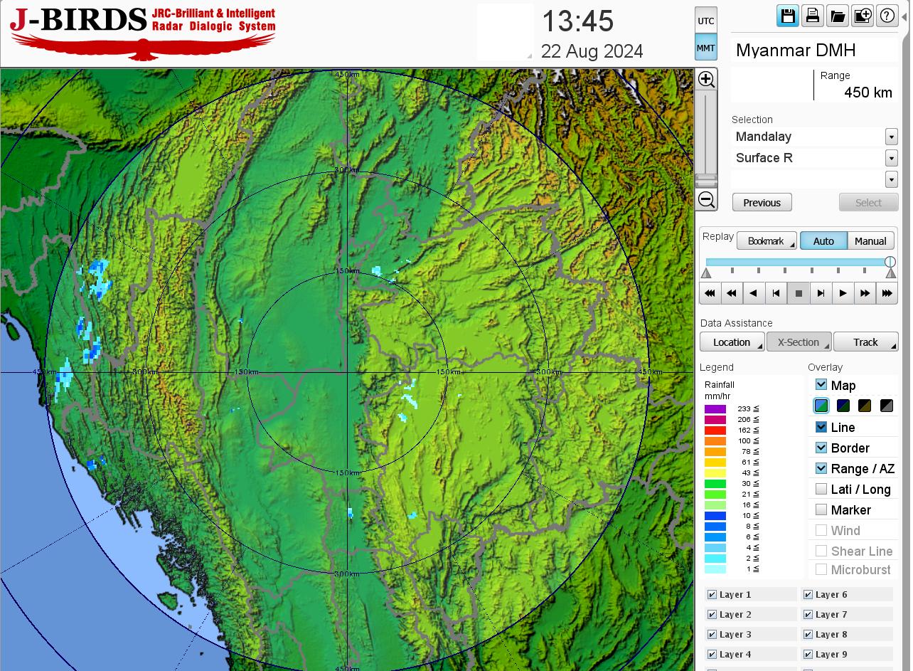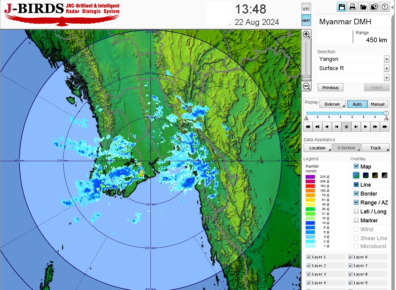 မိုးတိမ်တောင်ဖြစ်ပေါ်မှုအခြေအနေ။ စစ်ကိုင်းတိုင်းဒေသကြီးအထက်ပိုင်း၊ ရန်ကုန်တိုင်းဒေသကြီး၊ ဧရာဝတီတိုင်းဒေသကြီး၊ ကချင်ပြည်နယ်၊ ရှမ်းပြည်နယ်၊ ချင်းပြည်နယ်နှင့် ရခိုင်ပြည်နယ်တို့တွင် မိုးတိမ်တောင်များ ဖြစ်ထွန်းလျက်ရှိပါသည်။