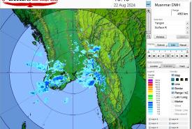 ယမန်နေ့နံနက်(၀၉:၃၀)နာရီအချိန်မှ ယနေ့နံနက်(၀၉:၃၀)နာရီအချိန်အထိ မိုးလေဝသ တိုင်းထွာချက်အကျဉ်းချုပ်။ လွန်ခဲ့သော(၂၄)နာရီအတွင်းက စစ်ကိုင်းတိုင်းဒေသကြီးအောက်ပိုင်းတွင် နေရာကွက်ကျား၊ ရှမ်းပြည်နယ် (မြောက်ပိုင်း) တွင် နေရာကျဲကျဲ၊ မန္တလေးတိုင်းဒေသကြီး၊ မကွေးတိုင်းဒေသကြီး၊ တနင်္သာရီတိုင်းဒေသကြီးနှင့် ကယားပြည်နယ်တို့တွင် နေရာစိပ်စိပ်နှင့် ကျန်တိုင်းဒေသကြီးနှင့် ပြည်နယ်တို့တွင် နေရာအနှံ့အပြား မိုးထစ်ချုန်းရွာခဲ့ပြီး၊ နေပြည်တော်၊ မကွေးတိုင်းဒေသကြီးနှင့် ရန်ကုန်တိုင်းဒေသကြီးတို့တွင် နေရာကွက်၍ မိုးကြီးခဲ့ပါသည်။ မှတ်သားဖွယ်ရာ မိုးရေချိန်များမှာ မှော်ဘီမြို့တွင် ၄.၄၅ လက်မ၊ လှည်းကူးမြို့တွင် ၃.၄၃ လက်မ၊ ဓနုဖြူမြို့တွင် ၂.၆၁ လက်မ၊ စစ်တွေမြို့တွင် ၂.၃၇ လက်မ၊ ကျုံပျော်မြို့တွင် ၂.၁၇ လက်မ၊ သာပေါင်းမြို့တွင် ၂.၁၀ လက်မ၊ ညောင်လေးပင်မြို့နှင့် ဘီလင်းမြို့တို့တွင် ၂.၀၁ လက်မစီ၊ ဘိုကလေးမြို့တွင် ၂.၀၀ လက်မ၊ မိုင်းဆတ်မြို့နှင့် မာန်အောင်မြို့တို့တွင် ၁.၈၁ လက်မစီနှင့် နေပြည်တော် (ဥတ္တရသီရိမြို့နယ် )နှင့် ဖြူးမြို့တို့တွင် ၁.၇၃ လက်မစီတို့ ဖြစ်ကြပါသည်။