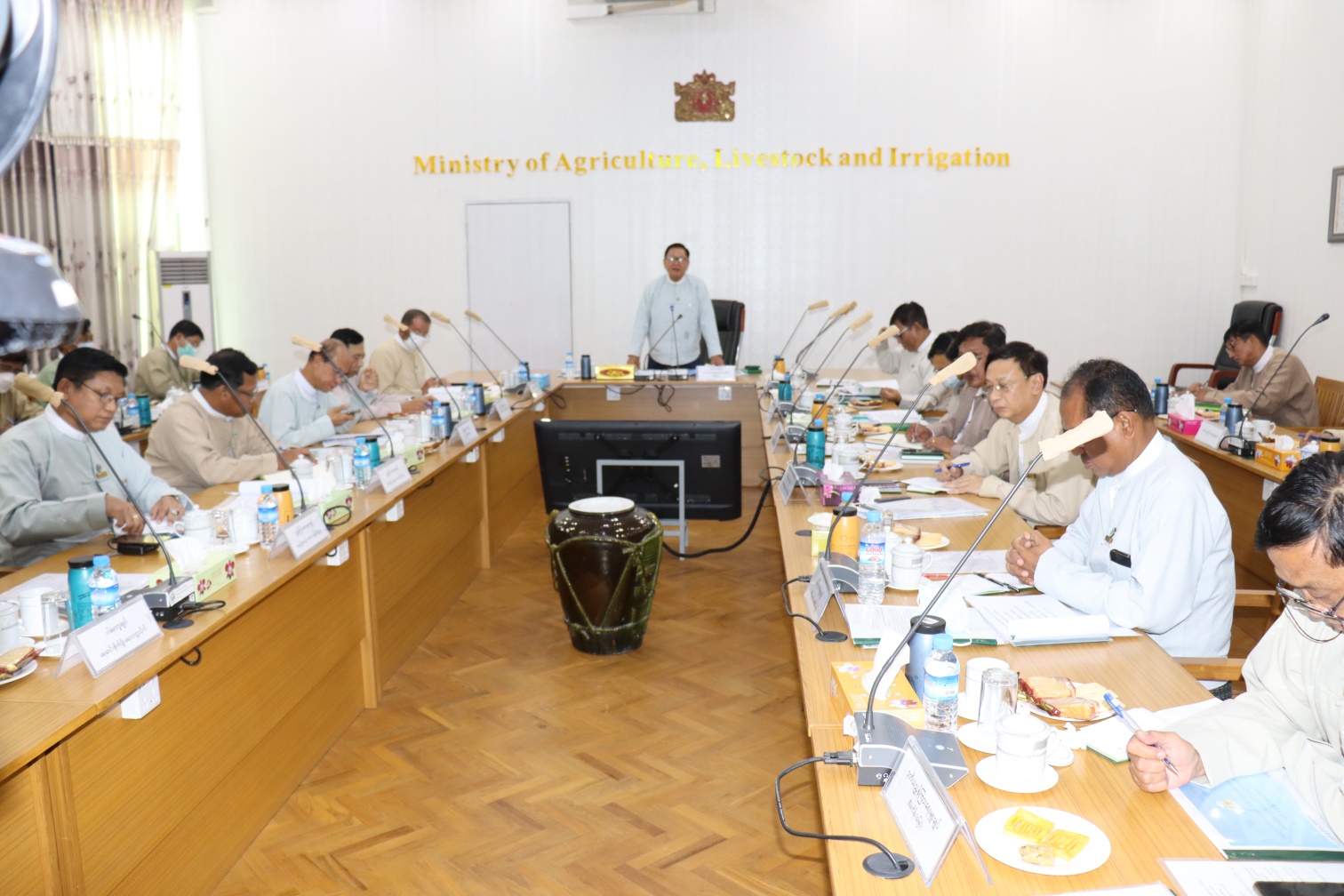 ဆက်လက်၍ လယ်ယာမြေစီမံခန့်ခွဲရေးနှင့် စာရင်းအင်းဦးစီးဌာန၊ ညွှန်ကြားရေးမှူးချုပ်က (၁/၂၀၂၂) အစည်းဝေးဆုံးဖြတ်ချက်များကို သက်ဆိုင်ရာဌာနများအလိုက် လုပ်ငန်းဆောင်ရွက်နေမှုအပေါ်  အကျဉ်းချုပ်တင်ပြဆွေးနွေးပြီး၊ စိုက်ပျိုးမွေးမြူရေးလုပ်ငန်းများ အကောင်အထည်ဖော် ဆောင်ရွက် နေမှုများကို  သက်ဆိုင်ရာဌာန ညွှန်ကြားရေးမှူးချုပ်များ၊ နေပြည်တော်ကောင်စီနယ်မြေရှိ တိုင်းဒေသ ကြီး၊ ခရိုင်အဆင့် လယ်ယာကဏ္ဍဆိုင်ရာ တာဝန်ရှိသူများက တင်ပြဆွေးနွေးကြရာ ဒုတိယဝန်ကြီးက လိုအပ်ချက်များ ဖြည့်စွက်ဆွေးနွေး ခဲ့ကြောင်း သိရသည်။