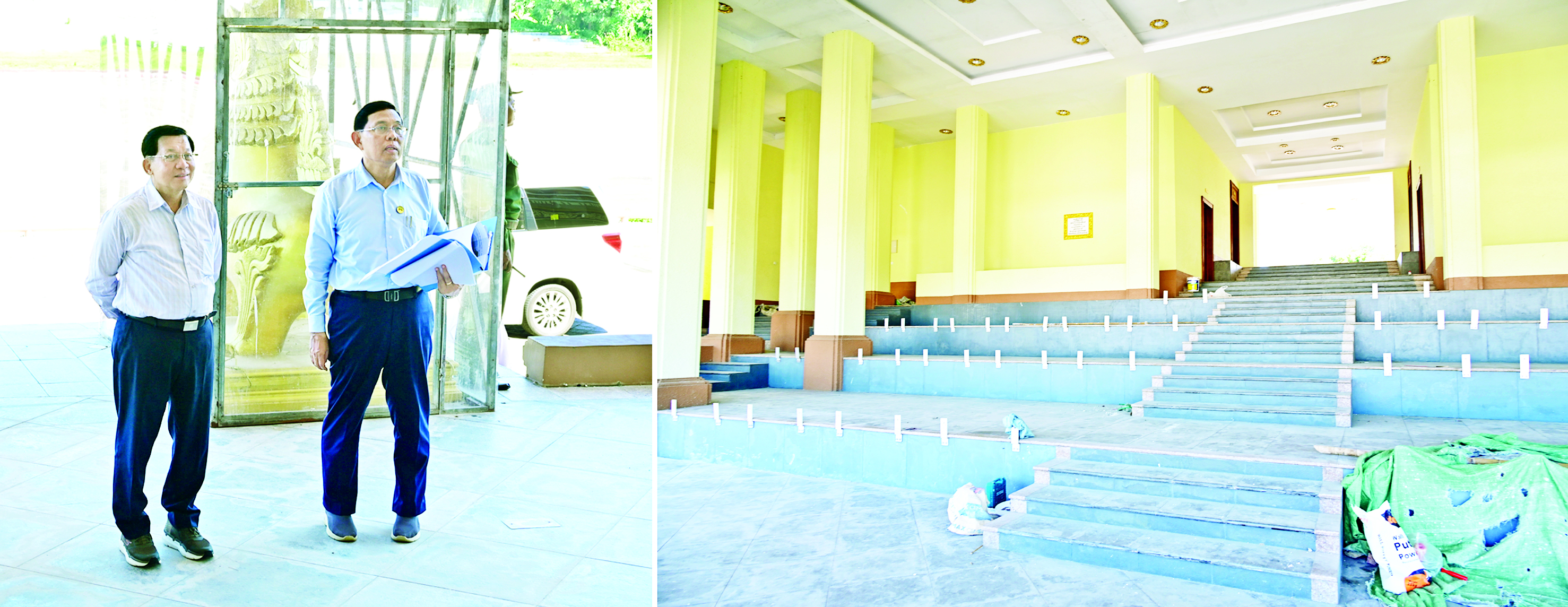 ဦးစွာ နိုင်ငံတော်ယာယီသမ္မတ နိုင်ငံတော်လုံခြုံရေးနှင့်အေးချမ်းသာယာရေးကော်မရှင်ဥက္ကဋ္ဌသည် နေပြည်တော်မြို့တော်ခန်းမအနီး ပြည်သူ့ရင်ပြင်နှင့်ဖျော်ဖြေရေးရင်ပြင်တည်ဆောက်နေမှုနှင့် ပျဉ်းမနား-တောင်ညို ၈ လမ်းသွားလမ်းဖောက်လုပ်နေမှုလုပ်ငန်းခွင်နေရာသို့ ရောက်ရှိကြရာ ဆောက်လုပ်ရေးဝန်ကြီးဌာနပြည်ထောင်စုဝန်ကြီး ဦးမျိုးသန့်၊ နေပြည်တော်ကောင်စီဥက္ကဋ္ဌ ဦးသန်းထွန်းဦးနှင့်တာဝန်ရှိသူများက လုပ်ငန်းဆောင်ရွက်နေမှုအခြေအနေများကို ရှင်းလင်းတင်ပြသည်။
