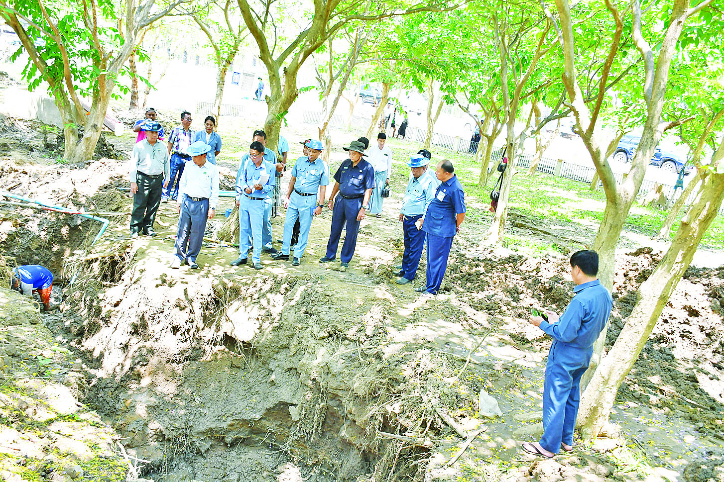 ယနေ့နံနက်ပိုင်းတွင် နေပြည်တော်ကောင်စီ ဥက္ကဋ္ဌသည် ဥတ္တရသီရိမြို့နယ် ရာဇသင်္ဂဟလမ်းအနီး ငလျင်ဘေးဒဏ်ကြောင့် ပျက်စီးခဲ့သည့် ပင်မရေပိုက်လိုင်းများ၊ ရေဖြန့်ဝေသည့်ပိုက်လိုင်းများ ပြန်လည်ပြုပြင်နေမှုနှင့် ရာဇသင်္ဂဟအိမ်ရာ (၁) ဝင်း အတွင်း ရေပိုက်လိုင်းများ ပြုပြင်နေမှုကို လှည့်လည် ကြည့်ရှုစစ်ဆေးသည်။