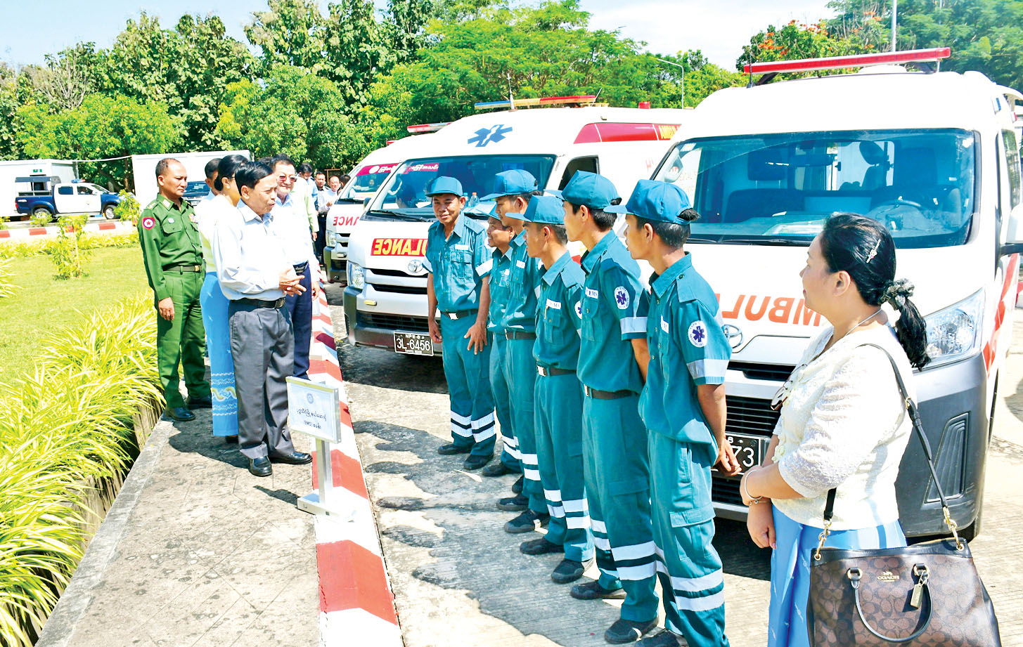 ဦးစွာ နေပြည်တော်ကောင်စီ ဥက္ကဋ္ဌက လူနာတင်ယာဉ်စခန်းများကို နေပြည်တော်ကောင်စီ နယ်မြေအတွင်း ခုနစ်မြို့နယ်တွင် သက်ဆိုင်ရာမြို့နယ်များရှိ ဆေးရုံများ၌ အဓိကအခြေပြုထားပြီး စုစုပေါင်း လူနာတင်ယာဉ်စခန်း ကိုးခု ထားရှိဆောင်ရွက်လျက်ရှိပါကြောင်း၊ အရေးပေါ်လူနာတင် ယာဉ်စနစ်အတွက် အသုံးပြုမည့် လူနာတင်ယာဉ်များကို Basic Ambulance အဖြစ် ပြင်ဆင် ဆောင်ရွက်ထားပြီး Telematic စနစ်ဖြင့် တပ်ဆင်ကာ လူနာတင် ယာဉ်တည်နေရာ၊ လှုပ်ရှားမှုတို့ကို Real time ကြီးကြပ်နေကြောင်း၊ နေ့စဉ်ဝန်ထမ်းများ၏ တာဝန်ထမ်းဆောင်မှု အခြေအနေ (Readiness) ကို EMS 192 Call Centerမှ နေ့စဉ်နံနက်တိုင်း စစ်ဆေး ဆောင်ရွက်လျက်ရှိကြောင်း၊ နေပြည်တော်ကောင်စီ နယ်မြေအတွင်း ယာဉ်တိုက်ခိုက်မှုများကြောင့် ထိခိုက်ဒဏ်ရာရ လူနာများကို ဆေးရုံသို့ နည်းစနစ် မှန်ကန်စွာ သယ်ယူပို့ဆောင်နိုင်ရန်အတွက် အရေးပေါ်လူနာတင် ယာဉ်စနစ်ကို အကောင်အထည် ဖော်ဆောင်ရွက်ရာတွင် နေပြည်တော်ကောင်စီနယ်မြေအတွင်းရှိ ဆက်စပ် ဌာနဆိုင်ရာများ အနေဖြင့် ပူးပေါင်းပါဝင်ကူညီ ဆောင်ရွက်ပေးကြစေလိုကြောင်း ပြောကြားသည်။