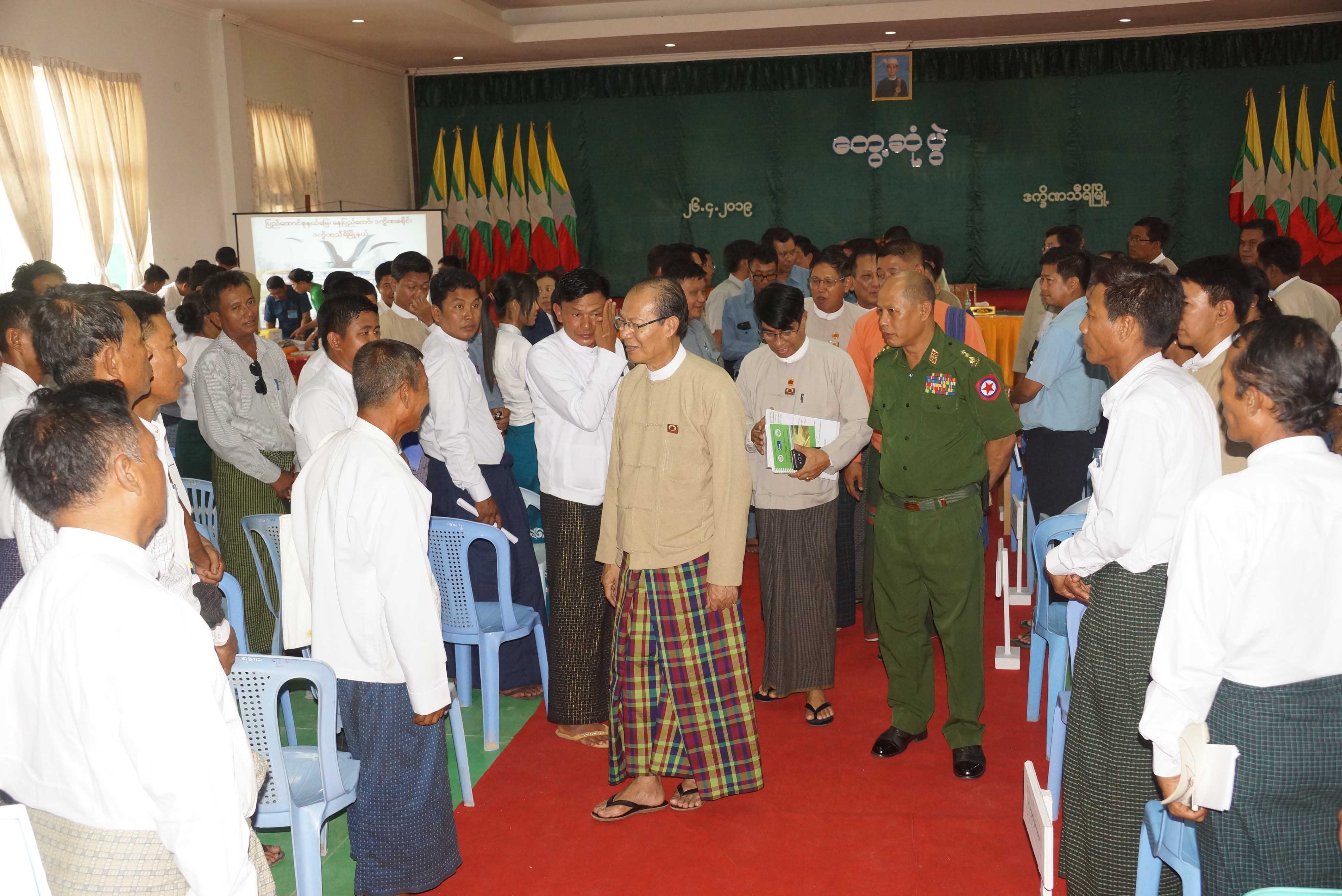 ရှေးဦးစွာ နေပြည်တော်ကောင်စီဥက္ကဋ္ဌ ဒေါက်တာမျိုးအောင်က နေပြည်တော်ကောင်စီ အပါအဝင် သက်ဆိုင်ရာဌာနဆိုင်ရာများအနေဖြင့် ပြည်သူဖြင့်ပေါင်းစပ် ဆောင်ရွက်နိုင်ရေးအတွက် တွေ့ဆုံပွဲအား ကျင်းပခဲ့ခြင်းဖြစ်ကြောင်း၊ ယခုတွေ့ဆုံပွဲတွင် ပြည်သူများအနေဖြင့် မိမိတို့ဒေသအတွက် လိုအပ်ချက်များအား ပွင့်ပွင့်လင်းလင်းတင်ပြမှသာ မိမိတို့ဒေသပိုမို ဖွံ့ဖြိုးတိုးတက်လာမည်ဖြစ်ကြောင်း၊ မြို့နယ်ဖွံ့ဖြိုးရေးလုပ်ငန်းများကို ဌာနဆိုင်ရာများနှင့် ပြည်သူများကပါဝင်စဉ်းစား ပေးစေလိုကြောင်း ပြောကြားသည်။