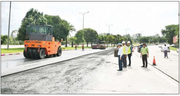 ထို့နောက် နေပြည်တော်ကောင်စီဥက္ကဋ္ဌသည် ရာဇဌာနီလမ်းမကြီး၊ ရာဇသင်္ဂဟလမ်းမကြီးနှင့် ဇေယျဌာနီလမ်းမကြီးများသို့သွားရောက်၍ ငလျင်ဘေးကြောင့် ထိခိုက်ပျက်စီးခဲ့သည့် လမ်းပိုင်းများ ပြန်လည်ပြုပြင်နေမှုနှင့် နိုင်လွန်ကတ္တရာလမ်း(AC) ခင်းကျင်းနေမှု (ဝဲပုံ)၊ ဥတ္တရသီရိရေလှောင်တမံ၊ ယာယီရေတားတမံ ဆောင်ရွက်ထားရှိမှုနှင့် ရေထုတ်ပြွန် ပြန်လည်ပြင်ဆင်ဆောင်ရွက်နေမှု အခြေအနေများကို လှည့်လည်ကြည့်ရှုစစ်ဆေးသည်။