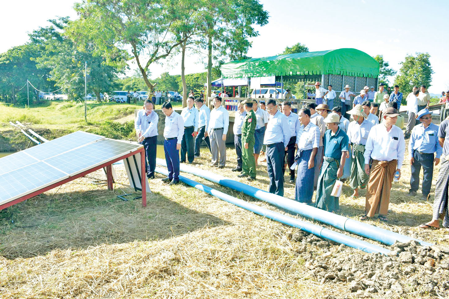 ထို့နောက် တက်ရောက်လာကြသူများက ဒေသစိုက်ပျိုးရေးနှင့်စပ်လျဉ်း၍ ဆွေးနွေးတင်ပြကြပြီး နေပြည်တော်ကောင်စီဥက္ကဋ္ဌနှင့် နေပြည်တော်ကောင်စီဝင်များက တောင်သူများထံ အနိမ့်တင် ဆိုလာပန့်များ လွှဲပြောင်းပေးအပ်ကာ အနိမ့်တင် ဆိုလာပန့်ဖြင့် စိုက်ပျိုးရေပေးဝေနေမှုကို ကြည့်ရှု အားပေးသည်။