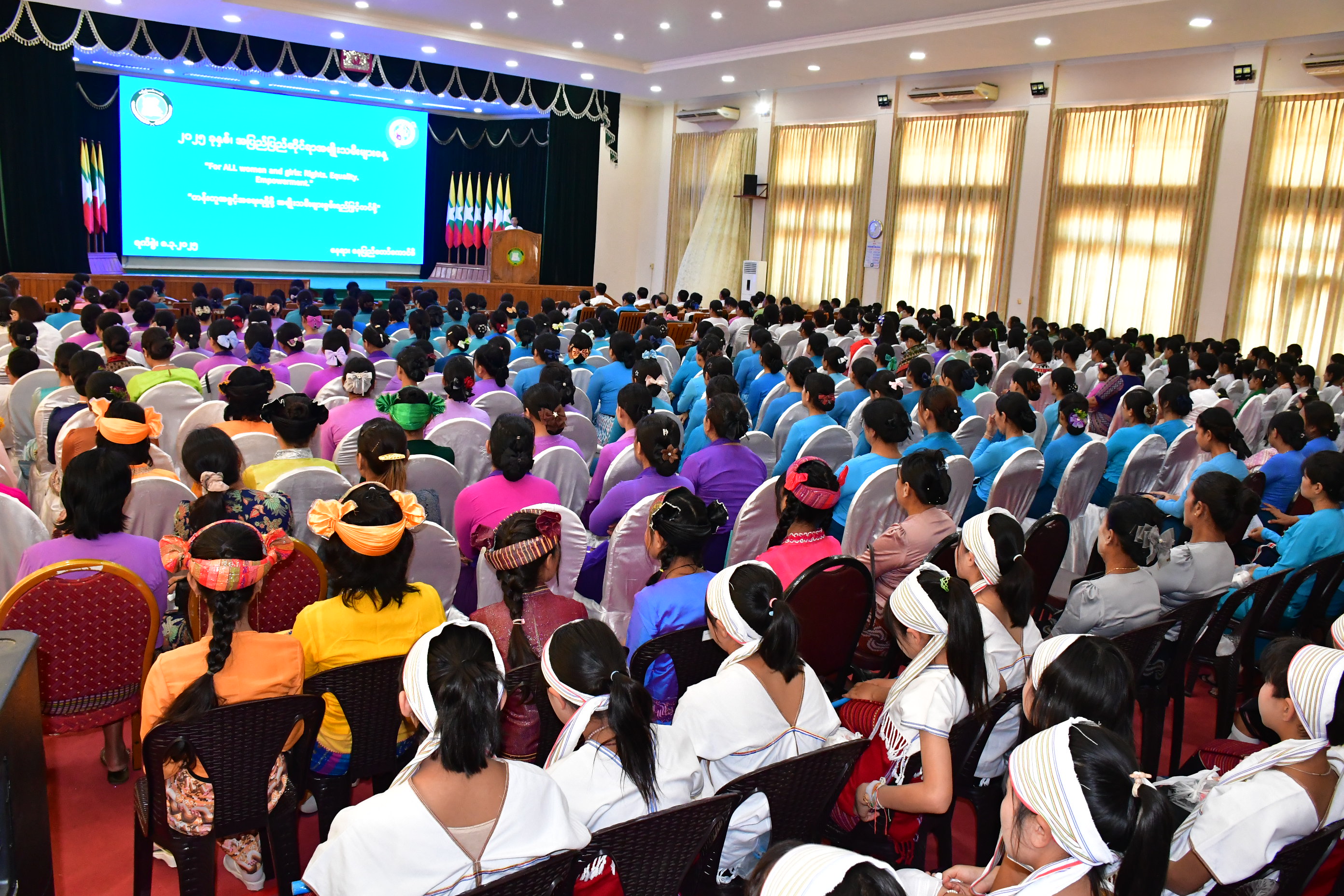 ယင်းနောက် အပြည်ပြည်ဆိုင်ရာ အမျိုးသမီးများနေ့ အခမ်းအနား Video Clip ကိုပြသပြီး နိုင်ငံတော်ကာကွယ်ရေးတက္ကသိုလ်၊ ဥတ္တရခရိုင်၊ ဇေယျာသီရိခရိုင်တို့မှကလေးငယ်များက အကများဖြင့် သီဆိုဖျော် ဖြေကြကာစာရေးဆရာမ သက်သက်နွယ် (ရန်ကုန်တက္ကသိုလ်) က “အမျိုးသမီးများ ဘဝနှင့်တန်းတူအခွင့်အရေးရရှိဖို့ အမျိုးသမီးများစွမ်းရည်မြှင့်တင်စို့” ခေါင်းစဉ်ဖြင့် ဟောပြောဆွေးနွေးသည်။
