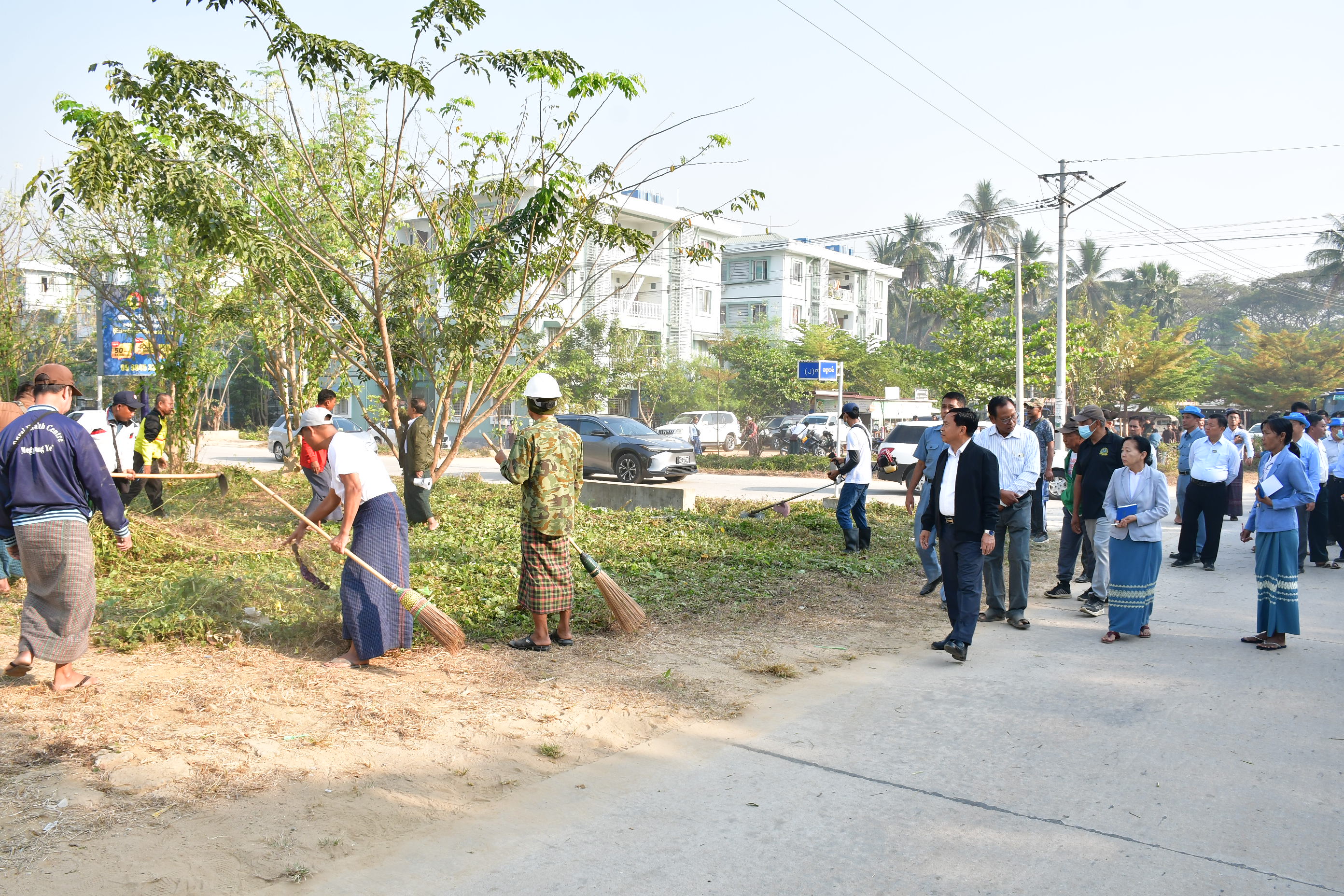 နေပြည်တော်ကောင်စီဥက္ကဋ္ဌ ဦးသန်းထွန်းဦးသည် နေပြည်တော်ကောင်စီဝင်များ၊ နေပြည်တော်စည်ပင်သာယာရေးကော်မတီ ဒုတိယမြို့တော်ဝန်၊ ကော်မတီဝင်များနှင့်အတူ ယနေ့ နံနက်ပိုင်းတွင် ဇမ္ဗူသီရိမြို့နယ်၊ သုခသိဒ္ဓိရပ်ကွက်ရှိ သုခတော်ဝင်အိမ်ရာအပိုင်း (၁) အတွင်း စုပေါင်းသန့်ရှင်းရေးလုပ်ငန်းများ ဆောင်ရွက်နေမှုကို သွားရောက်ကြည့်ရှုစစ်ဆးသည်။