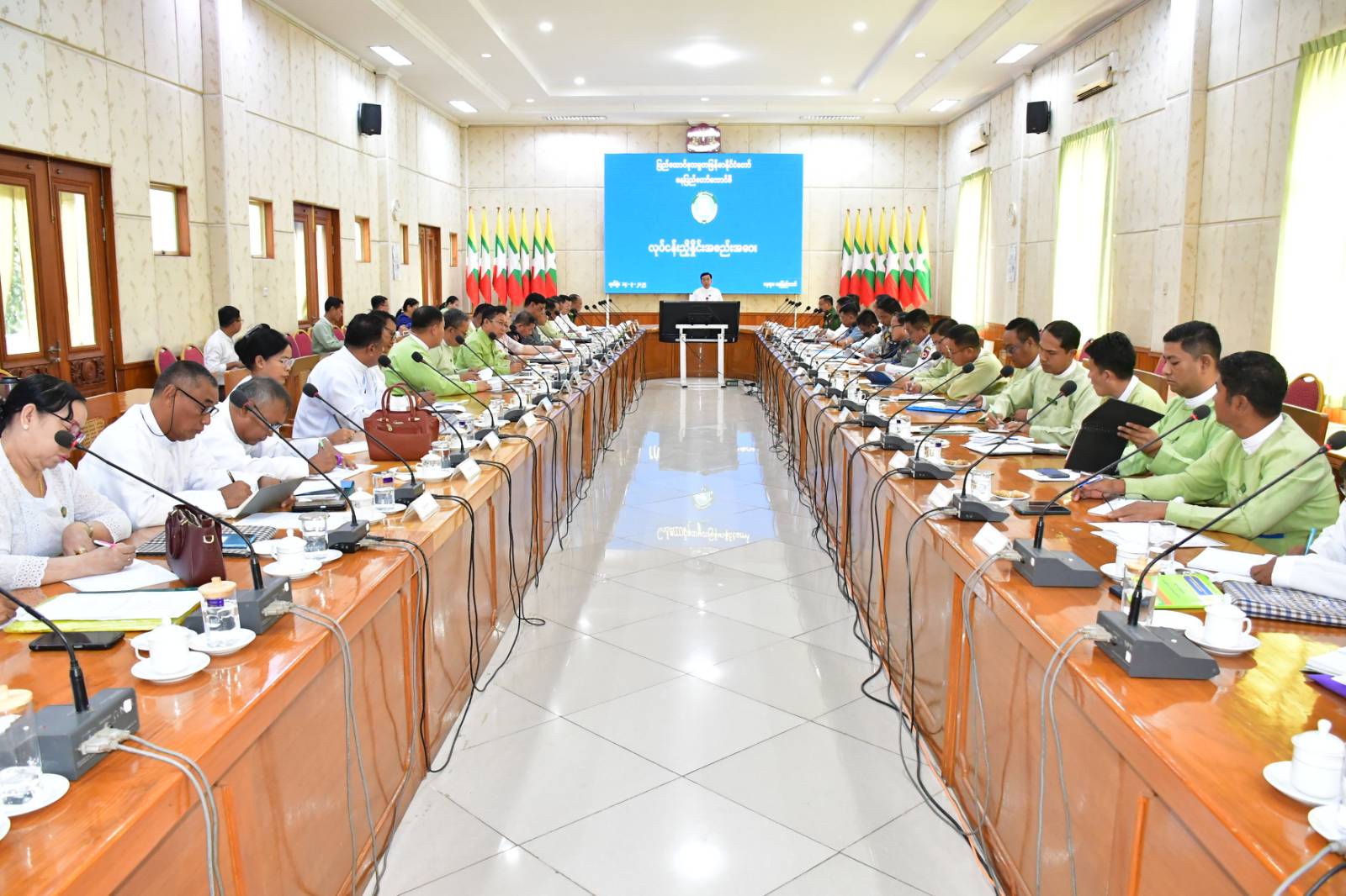 ဦးစွာ နေပြည်တော်ကောင်စီဥက္ကဋ္ဌက နေပြည်တော်အတွင်း ဒေသဖွံ့ဖြိုးတိုးတက်ရေးလုပ်ငန်းများကို ဌာန ဆိုင်များက သက်ဆိုင်ရာကဏ္ဍများအလိုက် ဝိုင်းဝန်းပူးပေါင်းဆောင်ရွက်ကြရမည်ဖြစ်ကြောင်း၊ တက္ကသိုလ်ဝင်စာမေးပွဲတွင် ကျောင်းသား၊ ကျောင်းသူများ စိတ်အေးချမ်းသာစွာဖြေဆိုနိုင်ရေး၊ စာမေးပွဲ ဖြေဆိုစဉ် ကာလအတွင်း ကျောင်းသား/ကျောင်းသူများ သွားလာမှုအဆင်ပြေစေရေး၊ ယာဉ်စည်းကမ်း၊ လမ်းစည်းကမ်းများထိန်းသိမ်းရေး၊ စာမေးပွဲဆိုင်ရာ လုံခြုံရေးနှင့် လျှပ်စစ်မီးပြတ်တောက်မှုမရှိစေရေး၊ ကျန်းမာရေးစောင့်ရှောက်မှု အပြည့်အဝရရှိစေရေးတို့ကို လပ်ဟာမှုမရှိစေရေး ဝိုင်းဝန်းပူးပေါင်း ဆောင်ရွက်ကြရမည်ဖြစ်ကြောင်း ပြောကြားသည်။
