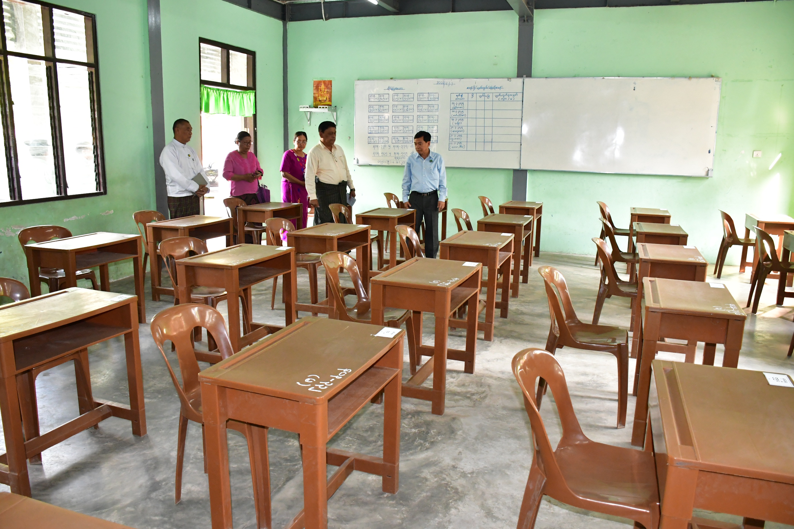 နေပြည်တော်ကောင်စီဥက္ကဋ္ဌ ဦးသန်းထွန်းဦးသည် နေပြည်တော်ကောင်စီဝင်များနှင့်အတူ ယနေ့မွန်းလွဲပိုင်းတွင် ၂၀၂၅ ခုနှစ်၊ တက္ကသိုလ်ဝင်စာမေးပွဲအတွက် ပျဉ်းမနားမြို့နယ်နှင့် လယ်ဝေးမြို့နယ်အတွင်းရှိ စာစစ်ဌာနများတွင် စာမေးပွဲဖြေဆိုခန်းများ ပြင်ဆင်ထားရှိမှု အခြေအနေများကို ကြည့်ရှုစစ်ဆေးသည်။