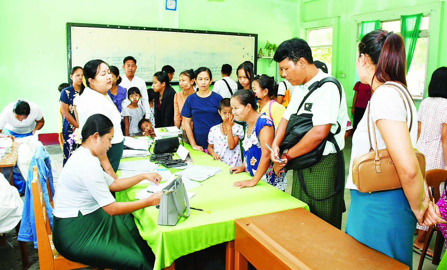ကျောင်းအပ်နှံရေးလုပ်ငန်းစဉ်များ ဆောင်ရွက်ပေးနေမှုအခြေအနေများနှင့် စပ်လျဉ်း၍ အမှတ်(၅) အခြေခံပညာအထက်တန်းကျောင်းမှ ကျောင်းအုပ်ဆရာကြီး ဦးဝင်းမြင့်ဦးက “ကျောင်းအပ်နှံရေး ရက်သတ္တပတ် မတိုင်ခင်ကတည်းက ကျောင်းဝင်းအတွင်းအပြင် သန့်ရှင်းသာယာလှပရေးနဲ့ ကျောင်း ဥပဓိရုပ်ကောင်းမွန်ရေးတို့အတွက် လိုအပ်တဲ့ပြင်ဆင်မှုတွေ ဆောင်ရွက်ထားရှိပါတယ်။ ဒီနေ့ကျောင်း စတင်အပ်နှံရေးနေ့မှာ ယခင်နှစ်က ကျောင်းသားဟောင်းတွေနဲ့ ထပ်မံလာရောက်အပ်နှံတဲ့ ကျောင်းသားတွေ ပိုမိုများပြားတာကိုတွေ့ရပါတယ်။ ကျောင်းပြောင်းလာရောက်အပ်နှံတဲ့ ကျောင်းသား ကျောင်းသူတွေကို အဆင်ပြေစွာ လက်ခံဆောင်ရွက်ပေးနေပါတယ်။ ကျောင်းအပ်နှံရေး အချိန်ကိုတော့ နံနက် ၈ နာရီ ကနေ ညနေ ၃ နာရီအထိ သတ်မှတ်ထားပါတယ်။ အခမဲ့ပညာရေးဖြစ်တဲ့အတွက် နိုင်ငံတော်အစိုးရက အထက်တန်းနဲ့ အလယ်တန်းဆိုရင် ပုံနှိပ်စာအုပ်တစ်စုံ၊ ဗလာစာအုပ်တစ်ဒါဇင်၊ ခဲတံနှစ်ချောင်း၊ ဘောပင်နှစ်ချောင်း ထောက်ပံ့ပေးပါတယ်။ မူလတန်းဆိုရင် ပုံနှိပ်စာအုပ်တစ်စုံ၊ ဗလာစာအုပ်၊ ခဲတံလေးချောင်းနဲ့ ကျောင်းဝတ်စုံ ထောက်ပံ့ပေးပါတယ်။