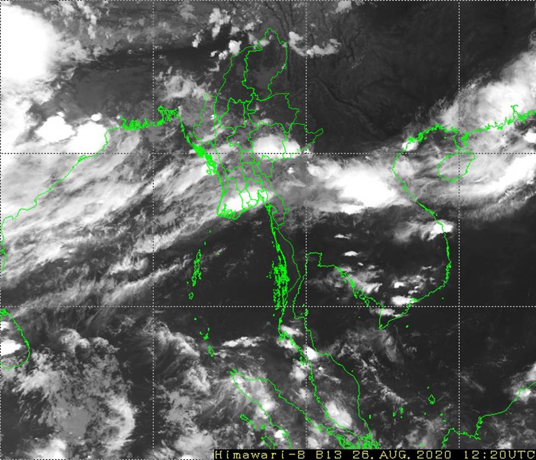 ဘင်္ဂလားပင်လယ်အော်အခြေအနေ။ ယနေ့မြန်မာစံတော်ချိန် (၁၈:၃၀)နာရီအချိန် တိုင်းထွာချက်များအရ ဘင်္ဂလားပင်လယ်အော်အနောက်မြောက်ပိုင်းနှင့် ယင်းနှင့် ဆက်စပ်လျှက်ရှိသော အိန္ဒိယနိုင်ငံ၊ အနောက်ဘင်္ဂလားပြည်နယ်ကမ်းခြေနှင့် ဩရိဿပြည်နယ်မြောက်ပိုင်းကမ်းခြေတို့တွင် ဖြစ်ပေါ်နေသော လေဖိအားနည်းရပ်ဝန်းသည် အိန္ဒိယနိုင်ငံ၊ အနောက်ဘင်္ဂလားပြည်နယ်တောင်ပိုင်းကမ်းခြေကို ဝင်ရောက်ခဲ့ပြီးဖြစ်ပါသည်။ ကပ္ပလီပင်လယ်ပြင်နှင့် ဘင်္ဂလားပင်လယ်အော်အရှေ့တောင်ပိုင်းတို့တွင် မုတ်သုံလေ အားနည်းနေပြီး၊ ကျန်ဘင်္ဂလားပင်လယ်အော်တွင် မုတ်သုံလေ အားအနည်းငယ်မှ အားအသင့်အတင့် ရှိနေပါသည်။