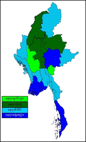 မနက်ဖြန်နံနက်အထိခန့်မှန်းချက်။ မကွေးတိုင်းဒေသကြီးနှင့် ကယားပြည်နယ်တို့တွင် နေရာကွက်ကျား၊ နေပြည်တော်၊ မန္တလေးတိုင်းဒေသကြီး၊ စစ်ကိုင်းတိုင်းဒေသကြီးနှင့် ရှမ်းပြည်နယ်(မြောက်ပိုင်း)တို့တွင် နေရာကျဲကျဲ၊ ပဲခူးတိုင်းဒေသကြီး၊ ကချင်ပြည်နယ်၊ ကရင်ပြည်နယ်၊ ချင်းပြည်နယ်၊ မွန်ပြည်နယ်၊ ရခိုင်ပြည်နယ်နှင့် ရှမ်းပြည်နယ်(အရှေ့ပိုင်း)တို့တွင် နေရာစိပ်စိပ်နှင့် ကျန်တိုင်းဒေသကြီးနှင့် ပြည်နယ်တို့တွင် နေရာအနှံ့အပြား မိုးထစ်ချုန်းရွာမည်။ ရွာရန်ရာနှုန်းပြည့်ဖြစ်ပါသည်။