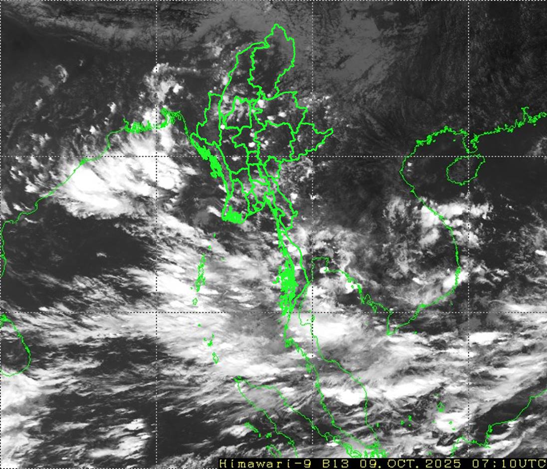 မိုးတိမ်တောင်ဖြစ်ပေါ်မှုအခြေအနေ။ စစ်ကိုင်းတိုင်းဒေသကြီး၊ ဧရာဝတီတိုင်းဒေသကြီးနှင့် တနင်္သာရီတိုင်းဒေသကြီးတို့တွင် မိုးတိမ်တောင်များဖြစ်ထွန်းမှု အားကောင်းလျက်ရှိပြီး အဆိုပါ မိုးတိမ်တောင်များရွေ့လျားရာနေရာတစ်လျှောက်တွင် မိုးရွာသွန်းခြင်းနှင့်အတူ လေပြင်းတိုက်ခတ်ခြင်း၊ မိုးထစ်ချုန်းခြင်း၊ မိုးကြိုးပစ်ခြင်း၊ လျှပ်စီးလက်ခြင်းနှင့် မိုးသီးကြွေခြင်းစသည့် မိုးလေဝသဖြစ်စဉ်များဖြစ်ပေါ်နိုင်ပါသဖြင့် ကြိုတင်သတိပြုနိုင်ပါရန် အကြံပြုအပ်ပါသည်။
