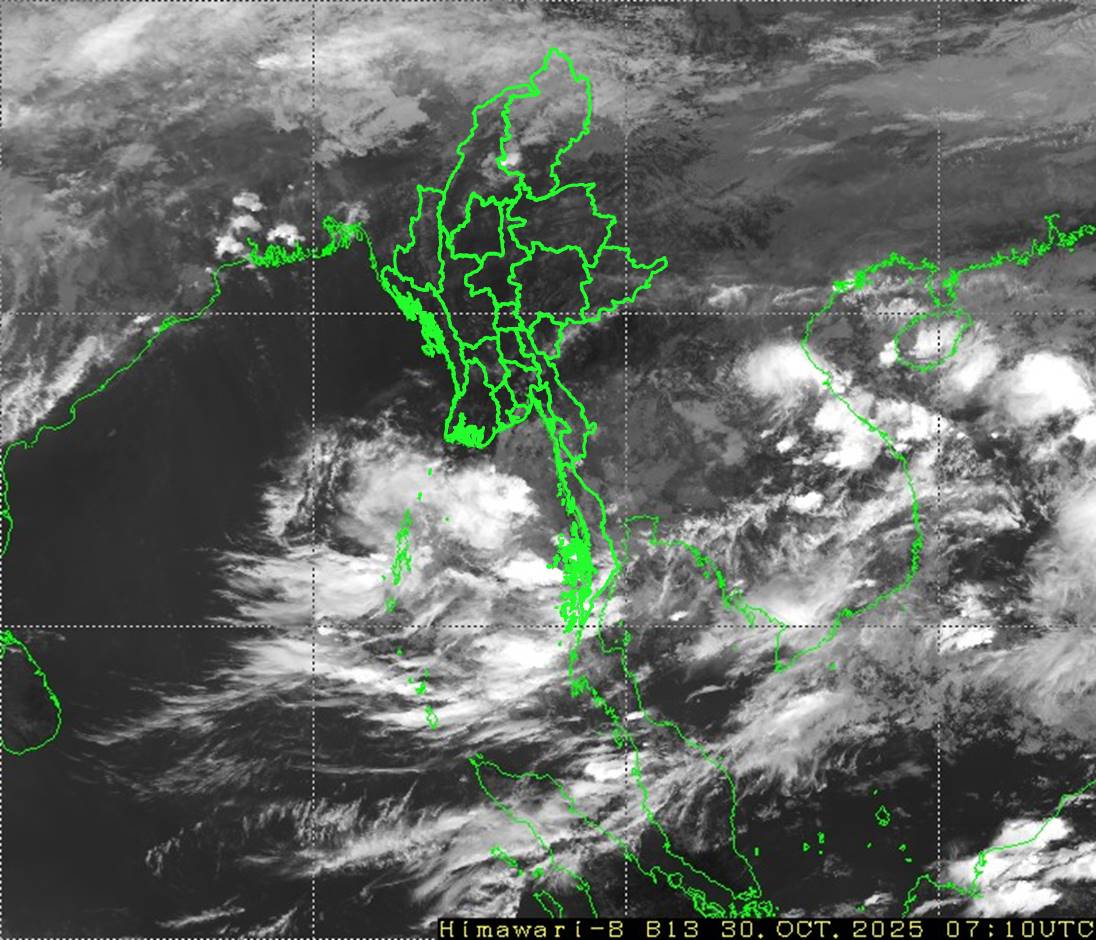 ဘင်္ဂလားပင်လယ်အော်အခြေအနေ။ ကပ္ပလီပင်လယ်ပြင်၊ ဘင်္ဂလားပင်လယ်အော်အရှေ့အလယ်ပိုင်းနှင့် အရှေ့တောင်ပိုင်းတို့တွင် တိမ်အသင့်အတင့်မှ တိမ်ထူထပ် နေပြီး ကျန်ဘင်္ဂလားပင်လယ်အော်တွင် တိမ်အနည်းငယ် ဖြစ်ထွန်းနေပါသည်။
