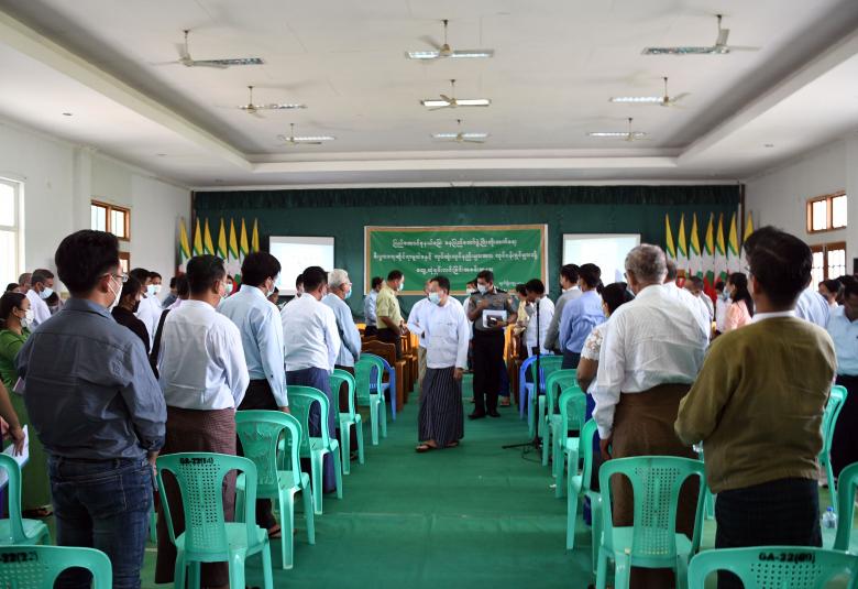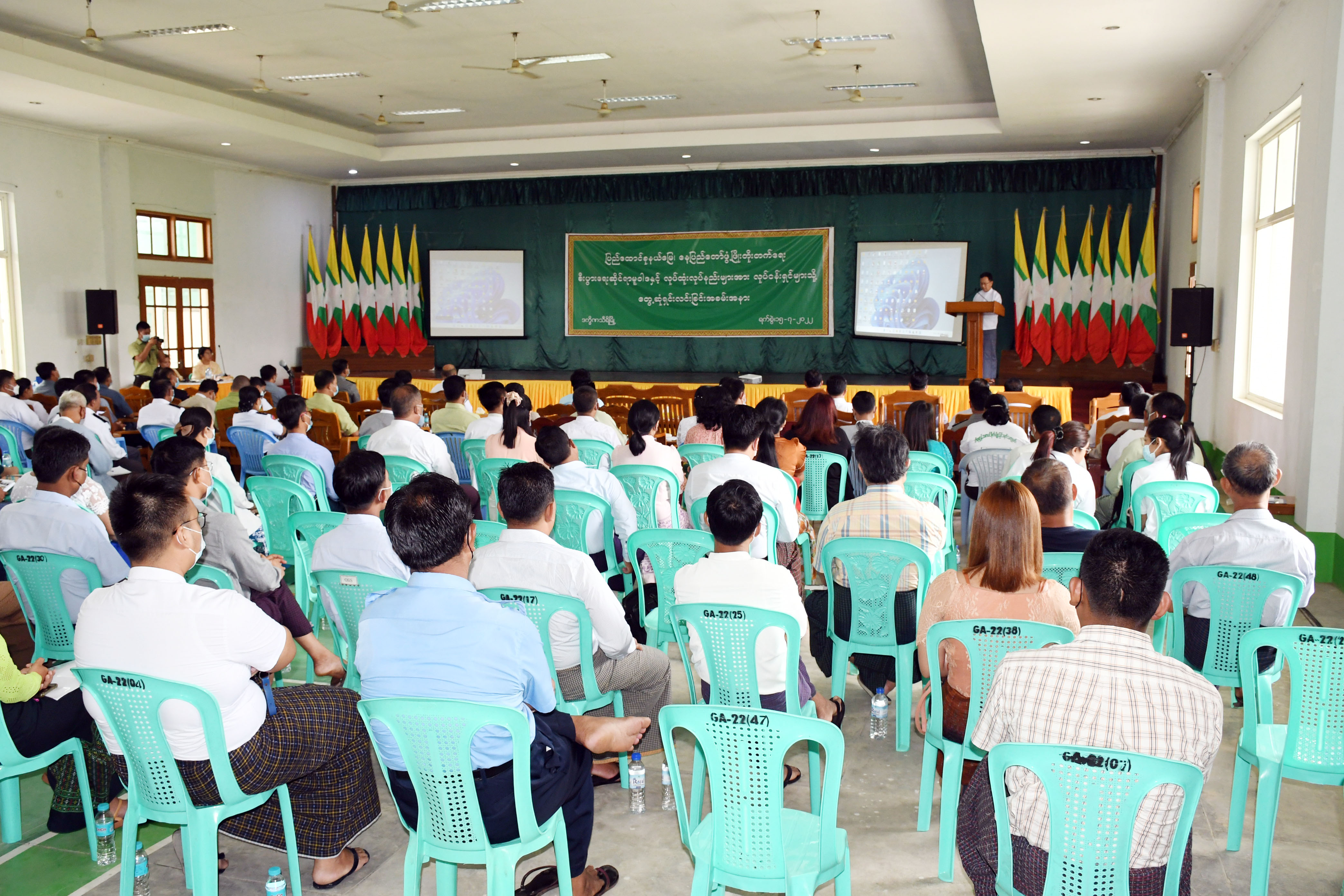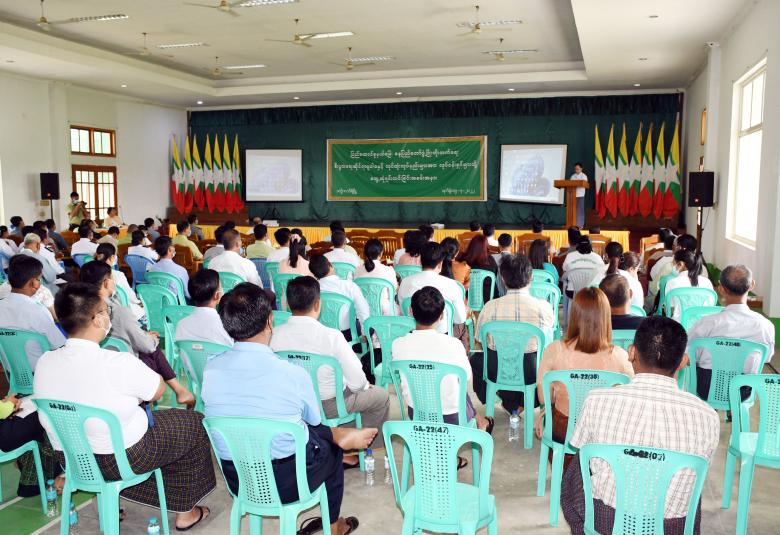 နေပြည်တော်ဖွံ့ဖြိုးတိုးတက်ရေး စီးပွားရေးဆိုင်ရာမူဝါဒနှင့် လုပ်ထုံးလုပ်နည်းများအား လုပ်ငန်းရှင်များသို့ တွေ့ဆုံရှင်းလင်းခြင်းကို ဇူလိုင် ၁၅ ရက် နံနက်ပိုင်းက ဒက္ခိဏသီရိမြို့နယ် အထွေထွေ အုပ်ချုပ်ရေး ဦးစီးဌာနရုံး အစည်းအဝေးခန်းမ၌ ကျင်းပသည်။