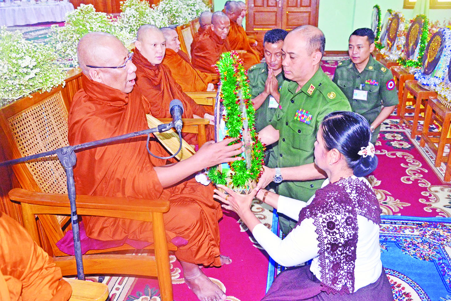 ထို့နောက် တိုင်းမှူးနှင့် တက်ရောက်လာကြသူများက သံဃာတော်များအား လှူဖွယ်ပစ္စည်းနှင့် နဝကမ္မအလှူငွေများ ဆက်ကပ်လှူဒါန်းကြပြီး ပါဠိတက္ကသိုလ်ကျောင်းတိုက်၊ စာချနာယက ဆရာတော်ထံမှ ပဋ္ဌာန်းအနုမောဒနာတရားနာယူကာ သံဃာတော်များအား နေ့ဆွမ်းဆက်ကပ် လှူဒါန်းခဲ့ကြောင်း သတင်းရရှိသည်။