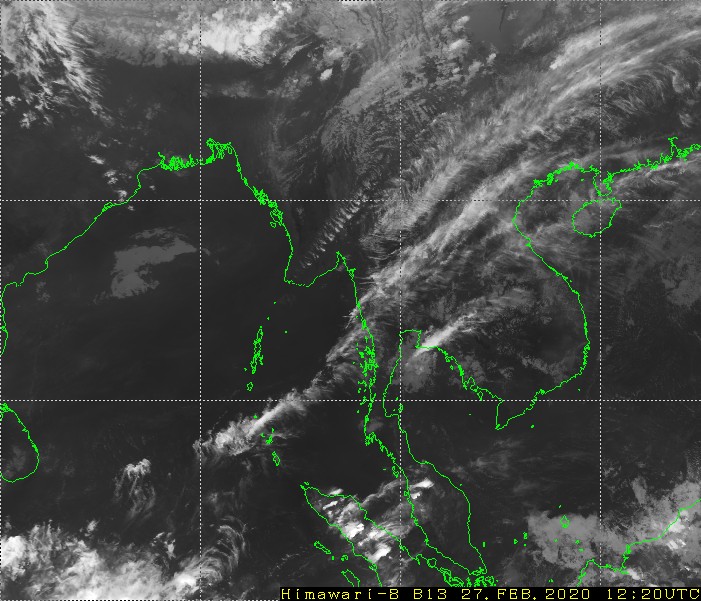 ဘင်္ဂလားပင်လယ်အော်အခြေအနေ။ ကပ္ပလီပင်လယ်ပြင်နှင့် ဘင်္ဂလားပင်လယ်အော်တို့တွင် တိမ်အနည်းငယ်မှ တိမ်အသင့်အတင့် ဖြစ်ထွန်းနေပါသည်။