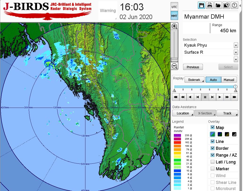 ဘင်္ဂလားပင်လယ်အော်အခြေအနေ။ ကပ္ပလီပင်လယ်ပြင်၊ ဘင်္ဂလားပင်လယ်အော်တောင်ပိုင်းနှင့် အရှေ့အလယ်ပိုင်းတို့တွင် မုတ်သုံလေအားနည်းနေပြီး၊ ကျန်ဘင်္ဂလားပင်လယ်အော်တွင် တိမ်အသင့်အတင့် ဖြစ်ထွန်းနေပါသည်။