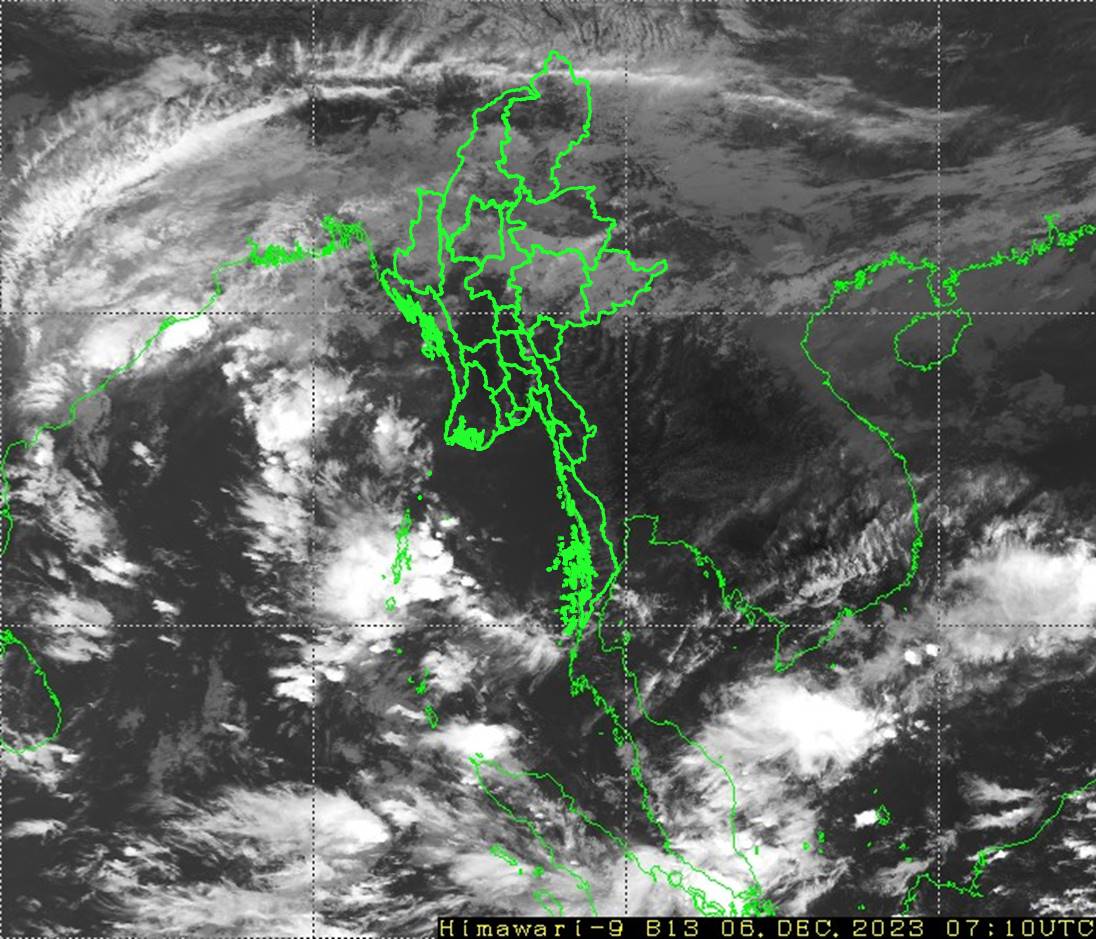 ယနေ့နံနက်(၀၉:၃၀)နာရီအချိန်ထိ မိုးလေဝသတိုင်းထွာချက်အကျဉ်းချုပ်။ လွန်ခဲ့သော(၂၄)နာရီအတွင်းက ရှမ်းပြည်နယ်(အရှေ့ပိုင်း)တွင် နေရာအနှံ့အပြား၊ စစ်ကိုင်းတိုင်းဒေသကြီးအထက်ပိုင်းနှင့် ချင်းပြည်နယ်တို့တွင် နေရာစိပ်စိပ်၊ မန္တလေးတိုင်းဒေသကြီး၊ ရန်ကုန်တိုင်းဒေသကြီးနှင့် ရှမ်းပြည်နယ်(မြောက်ပိုင်း နှင့် တောင်ပိုင်း)တို့တွင် နေရာကျဲကျဲ၊ စစ်ကိုင်းတိုင်းဒေသကြီးအောက်ပိုင်း၊ ပဲခူးတိုင်းဒေသကြီး၊ တနင်္သာရီတိုင်းဒေသကြီး၊ ကချင်ပြည်နယ်နှင့် မွန်ပြည်နယ် တို့တွင် နေရာကွက်ကျား မိုးထစ်ချုန်းရွာခဲ့ပြီး၊ ကျန်တိုင်းဒေသကြီးနှင့် ပြည်နယ်တို့တွင် တိမ်အသင့်အတင့် ဖြစ်ထွန်းခဲ့ပါသည်။ ညအပူချိန်များမှာ ပဲခူးတိုင်း ဒေသကြီး၊ ဧရာဝတီတိုင်းဒေသကြီး၊ ကချင်ပြည်နယ်၊ ရှမ်းပြည်နယ်(မြောက်ပိုင်းနှင့် အရှေ့ပိုင်း)၊ ချင်းပြည်နယ်၊ ကယားပြည်နယ်၊ ကရင်ပြည်နယ်နှင့် မွန် ပြည်နယ်တို့တွင် ဒီဇင်ဘာလ၏ ပျမ်းမျှအပူချိန်တို့ထက် (၃)ဒီဂရီစင်တီဂရိတ်မှ (၄)ဒီဂရီစင်တီဂရိတ်အထိနှင့် နေပြည်တော်၊ စစ်ကိုင်းတိုင်းဒေသကြီး၊ မန္တလေး တိုင်းဒေသကြီး၊ မကွေးတိုင်းဒေသကြီး၊ ရှမ်းပြည်နယ်(တောင်ပိုင်း)နှင့် ရခိုင်ပြည်နယ်တို့တွင် ဒီဇင်ဘာလ၏ ပျမ်းမျှအပူချိန်တို့ထက် (၅)ဒီဂရီစင်တီဂရိတ်မှ (၆)ဒီဂရီစင်တီဂရိတ်အထိပိုခဲ့ပြီး၊ ရန်ကုန်တိုင်းဒေသကြီးနှင့် တနင်္သာရီတိုင်းဒေသကြီးတို့တွင် ဒီဇင်ဘာလ၏ ပျမ်းမျှအပူချိန်ခန့်သာ ရှိခဲ့ပါသည်။ ထူးခြားသည့် ညအပူချိန်များမှာ ဟားခါးမြို့တွင် (၉)ဒီဂရီစင်တီဂရိတ်၊ မိုင်းယန်းမြို့၊ တီးတိန်မြို့နှင့် တွန်းဇံမြို့တို့တွင် (၁၀)ဒီဂရီစင်တီဂရိတ်စီနှင့် ပူတာအိုမြို့တွင် (၁၁) ဒီဂရီစင်တီဂရိတ်တို့ ဖြစ်ကြပါသည်။ မှတ်သားဖွယ်ရာ မိုးရေချိန်များမှာ သာယာဝတီမြို့တွင် (၀.၈၃)လက်မ၊ မြိတ်မြို့တွင် (၀.၆၆)လက်မ၊ ကွမ်းခြံကုန်းမြို့တွင် (၀.၃၉)လက်မ၊ မိုင်းယန်းမြို့တွင် (၀.၂၇)လက်မနှင့် ကျောက်မဲမြို့တွင် (၀.၂၄)လက်မတို့ ဖြစ်ကြပါသည်။