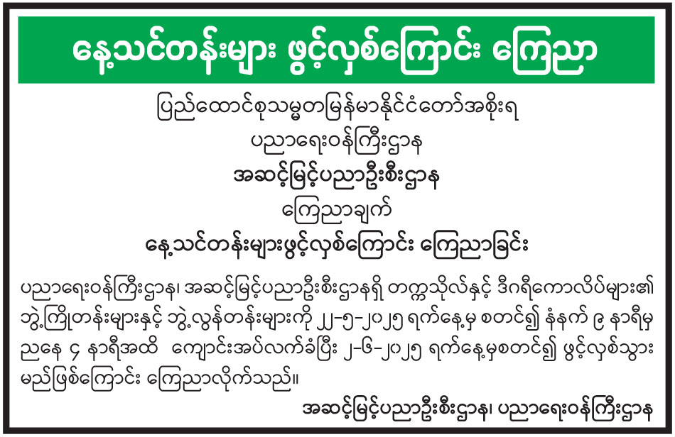 နေ့သင်တန်းများ ဖွင့်လှစ်ကြောင်း ကြေညာ