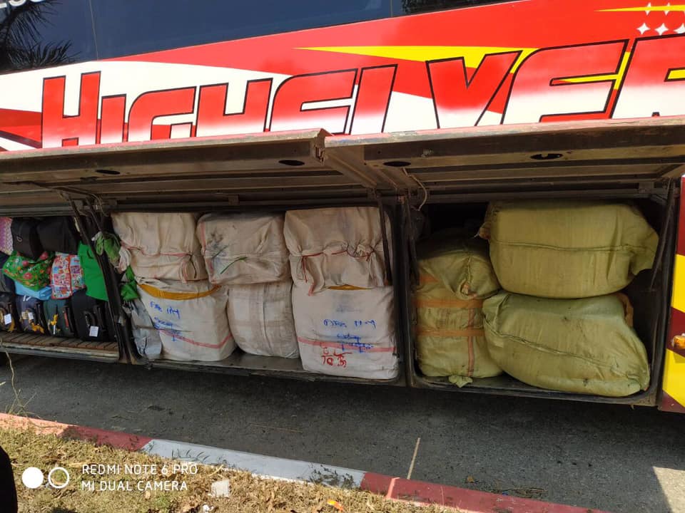 အောင်မင်္ဂလာ အဝေးပြေးဂိတ်မှ ထွက်ခွာလာသည့် ယာဉ်အမှတ် 6M/7--- HIGHT CLASS Express ယာဉ်တွင် ခရီးသည်များအပြင် ငါးစိမ်းအိတ်များကို အန္တရာယ် ဖြစ်ဖွယ်တင်ဆောင်လာကြောင်း ယနေ့နေ့လယ် ၁၁ နာရီက ခရီးသွားပြည်သူတစ်ဦးက အမြန်လမ်းမကြီး ရဲတပ်ဖွဲ့သို့ သတင်းပေးပို့ အကြောင်းကြားလာသဖြင့် အမြန်လမ်းမကြီးရဲတပ်ဖွဲ့ အမှတ်(၃) လမ်းဆုံစခန်း တပ်ဖွဲ့ဝင်များမှ အဆိုပါ ယာဉ်အား အမြန်လမ်းမပေါ်သို့ ဝင်ရောက်ခွင့်မပြုဘဲ ယာဉ်ပေါ်ပါ ငါးစိမ်းအိတ် ၁၄ အိတ်ကို မူလဂိတ်တွင် ပြန်လည် ချထားရန် တားမြစ်ထိန်းသိမ်းခဲ့ကြောင်း အမြန်လမ်းရဲတပ်ဖွဲ့မှူးရုံးမှ သိရသည်။