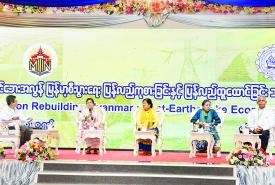 ထို့ပြင် ငလျင်ဘေးသင့်ဒေသများ ပြန်လည်ထူထောင်ရေးအတွက် အဓိက အထောက်အကူပြုနိုင်သည့် အင်အားများဖြစ်သော MSME လုပ်ငန်းများနှင့် ဆောက်လုပ်ရေးဝန်ဆောင်မှုလုပ်ငန်းများကို ပြည်ထောင်စုနယ်မြေနေပြည်တော်၊ မန္တလေးတိုင်းဒေသကြီး၊ စစ်ကိုင်းတိုင်းဒေသကြီး၊ ရှမ်းပြည်နယ်တို့တွင် လုပ်ငန်းများ အမြန်ဆုံးလည်ပတ်နိုင်ရေးနှင့် တည်ဆောက်ရေးလုပ်ငန်းများ ကူညီဆောင်ရွက်ပေးလျက်ရှိပါကြောင်း ပြောကြားသည်။
